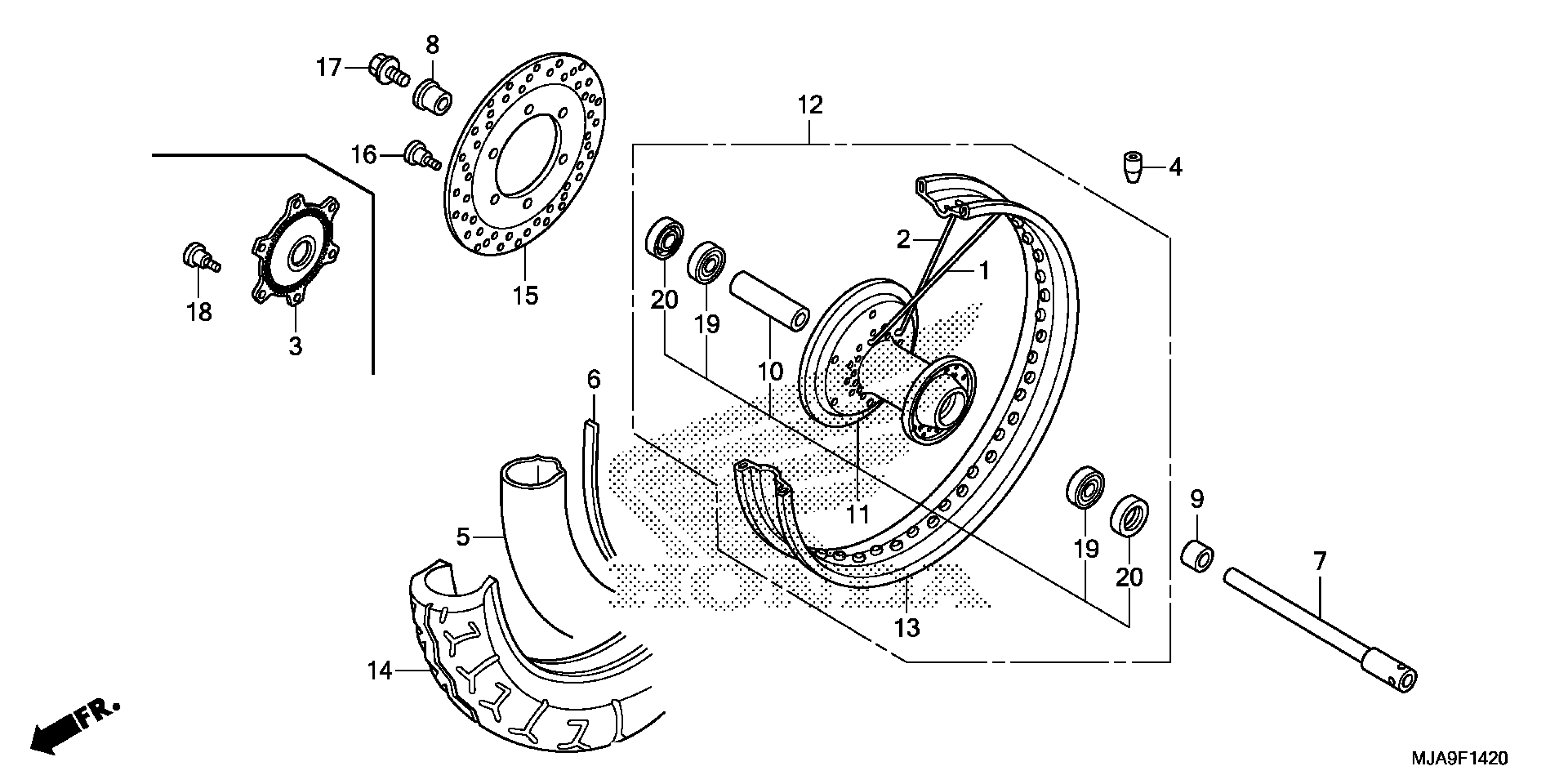 Honda VT750C2BAC (17) MOTORCYCLE, JPN, VIN# JH2RC538-HK700001 FRONT WHEEL Diagram