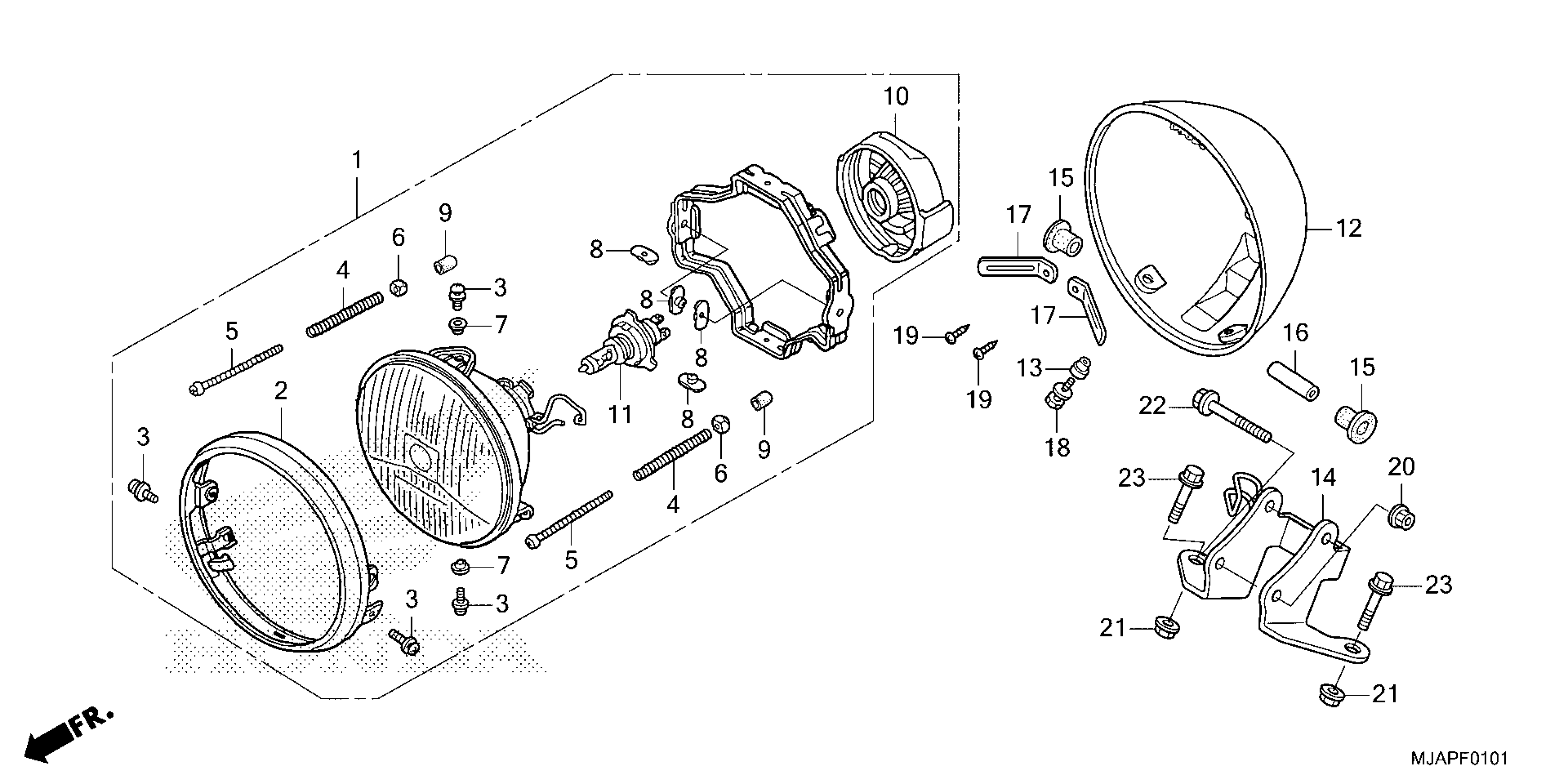 Honda VT750C2BAC (23) MOTORCYCLE, JPN, VIN# JH2RC538-PK300001 TO JH2RC538-PK999999 HEADLIGHT (2) Diagram