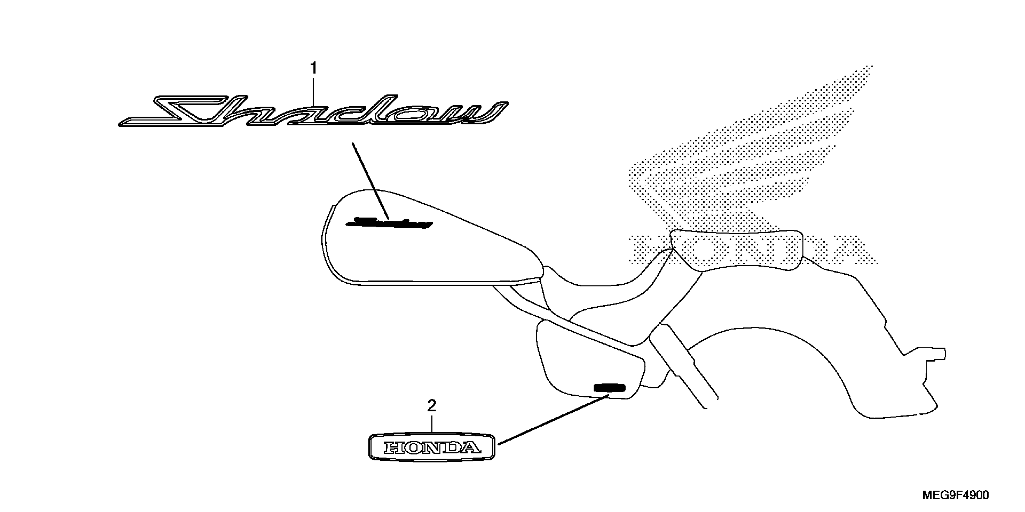 Honda VT750CA (11) SHADOW AERO, JPN, VIN# JH2RC500-BK700001 TO JH2RC500-BK799999 MARK (1) Diagram