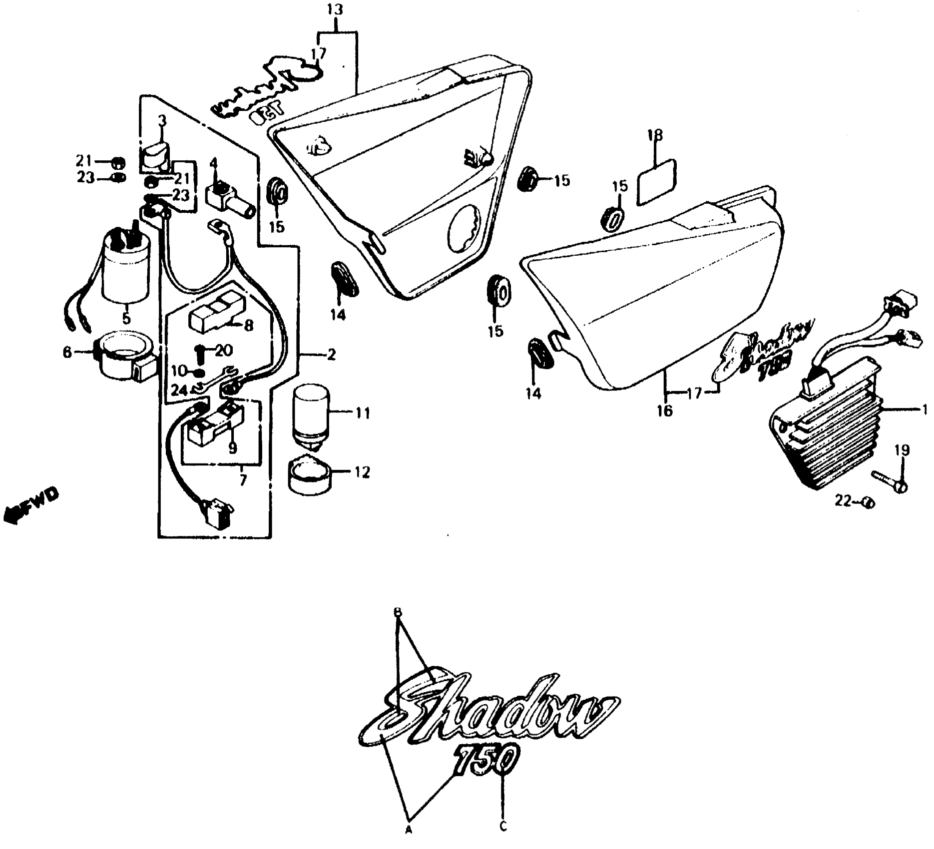Honda VT750CA (83) SHADOW 750, JPN, VIN# JH2RC140-DM000035 TO JH2RC140-DM022807 SIDE COVER Diagram
