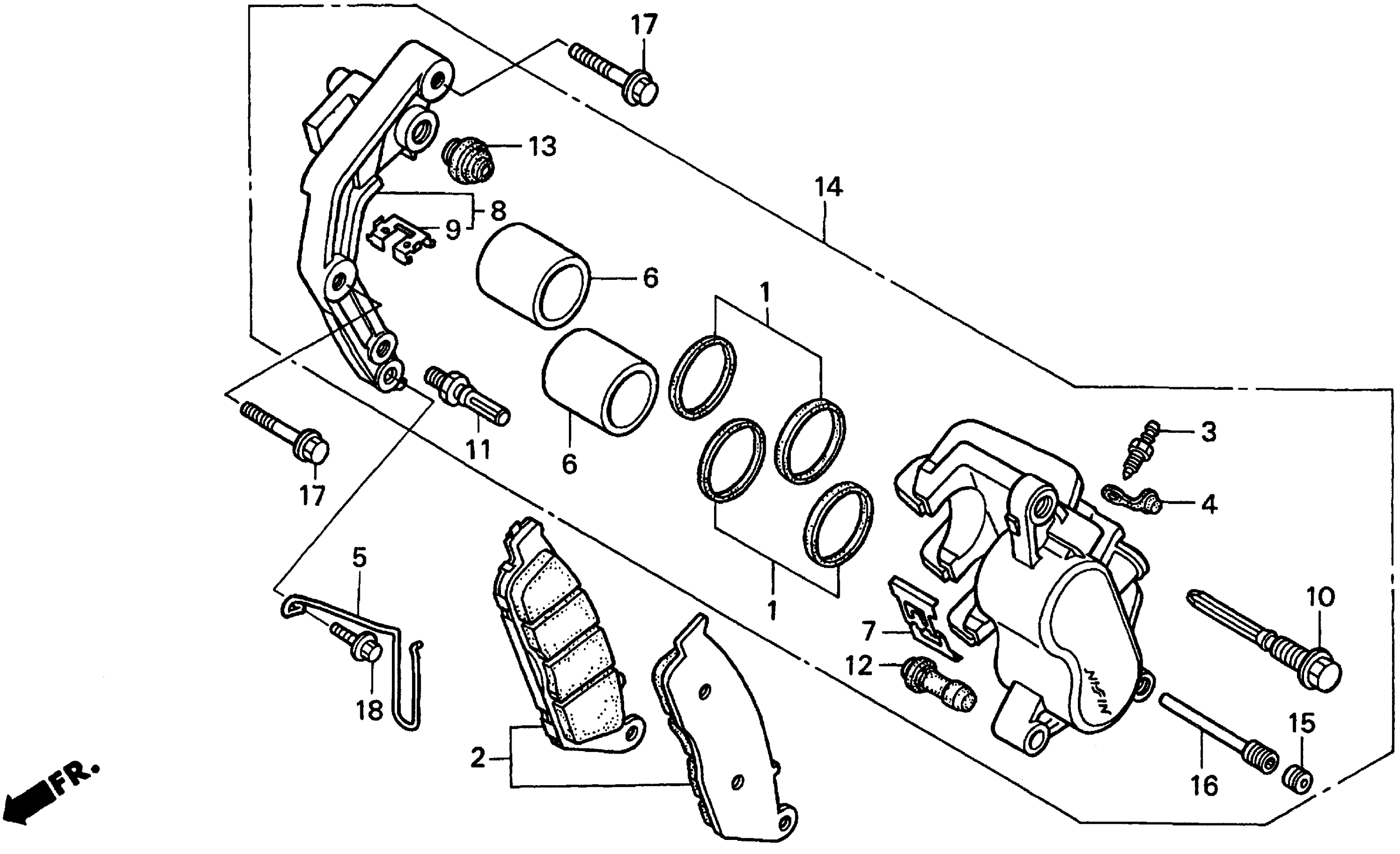 Honda VT750CA (99) SHADOWAMERICAN CLASSIC EDITION 750, JPN, VIN# JH2RC440-XM100001 FRONT BRAKE CALIPER Diagram