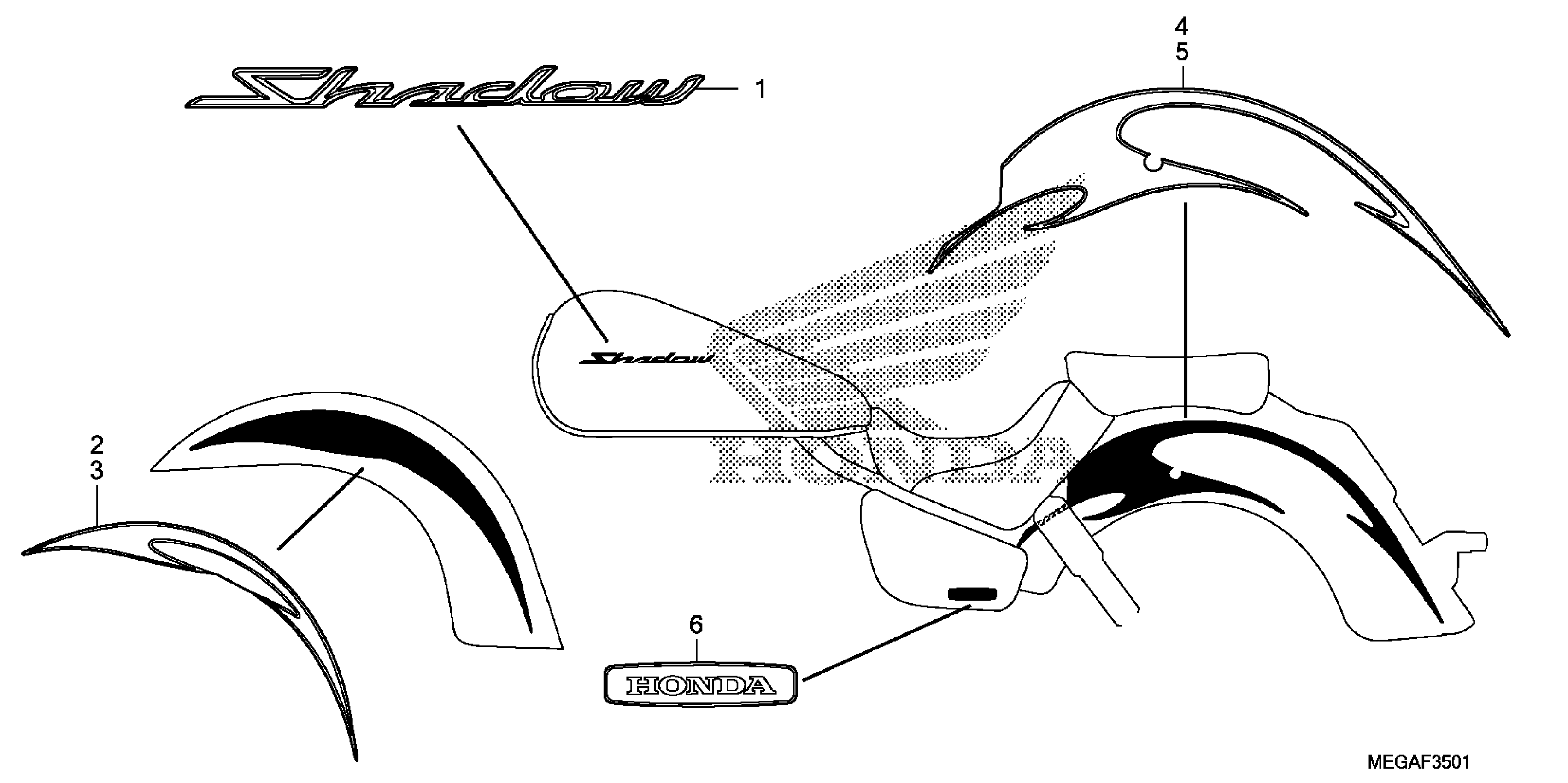 Honda VT750CA2A (09) SHADOW AERO, JPN, VIN# JH2RC507-9K000001 TO JH2RC507-9K001200 MARK@STRIPE (2A,2AC,2CM) Diagram