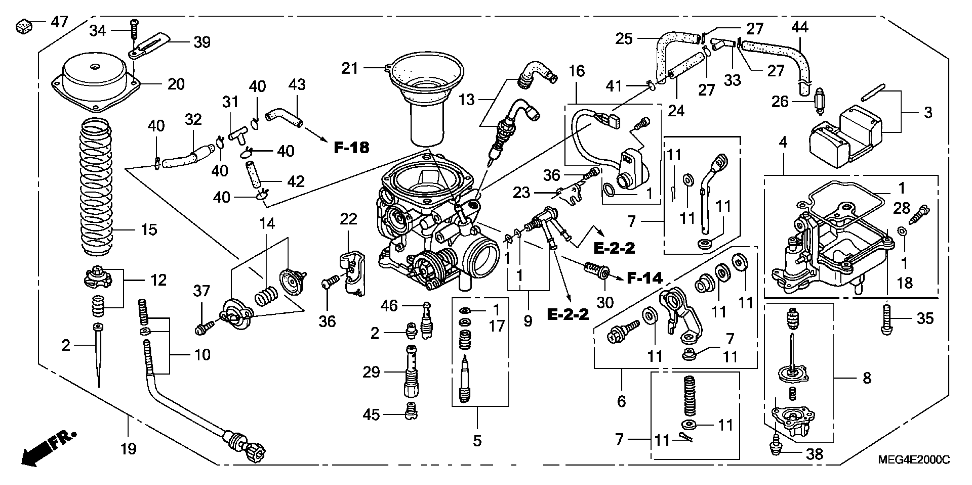 Honda VT750CAA/A (04) SHADOW AERO, JPN, VIN# JH2RC503-4K010001 TO JH2RC503-4K019999 CARBURETOR (A/CM) Diagram