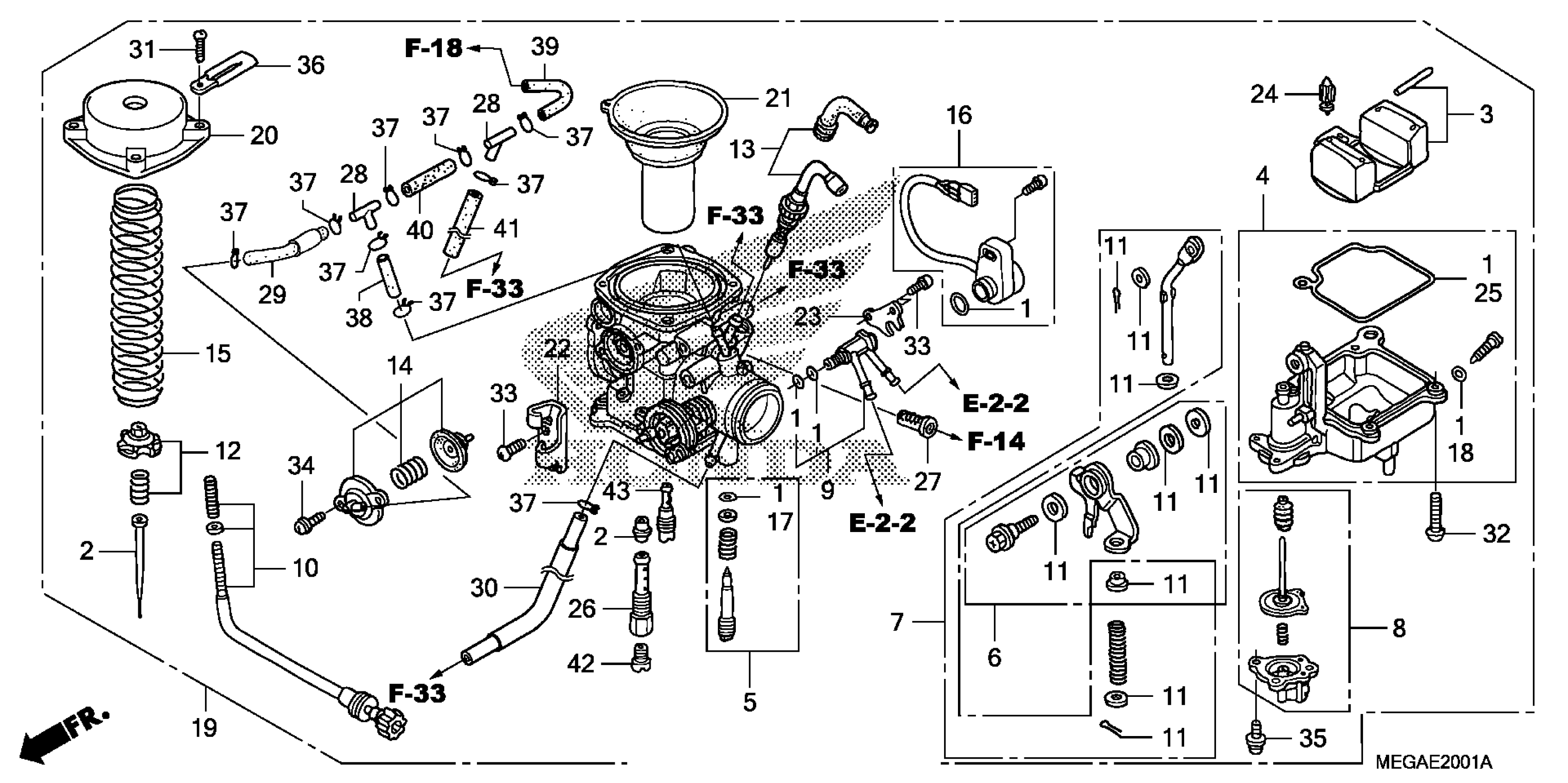 Honda VT750CAAC/B (08) SHADOW AERO, JPN, VIN# JH2RC505-8K420001 TO JH2RC505-8K429999 CARBURETOR (AC/2AC) Diagram