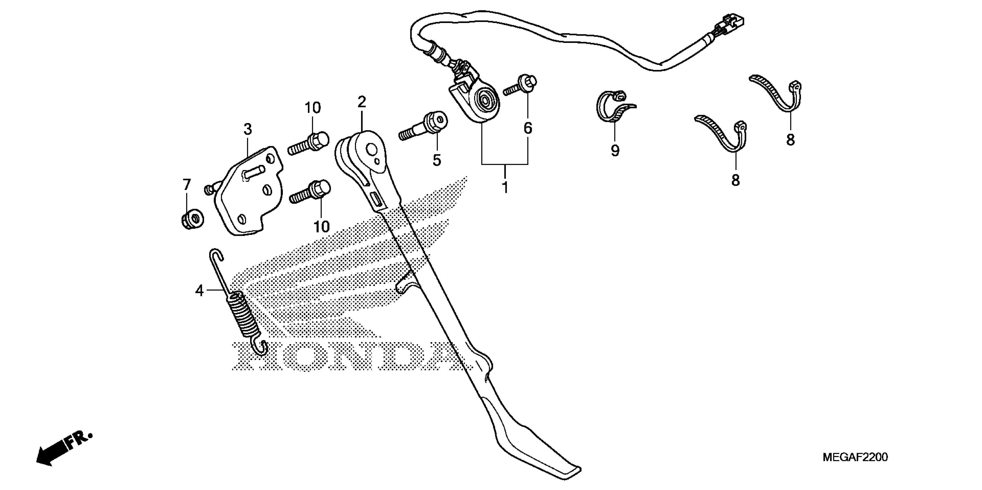 Honda VT750CAAC/B (08) SHADOW AERO, JPN, VIN# JH2RC505-8K420001 TO JH2RC505-8K429999 SIDE STAND Diagram