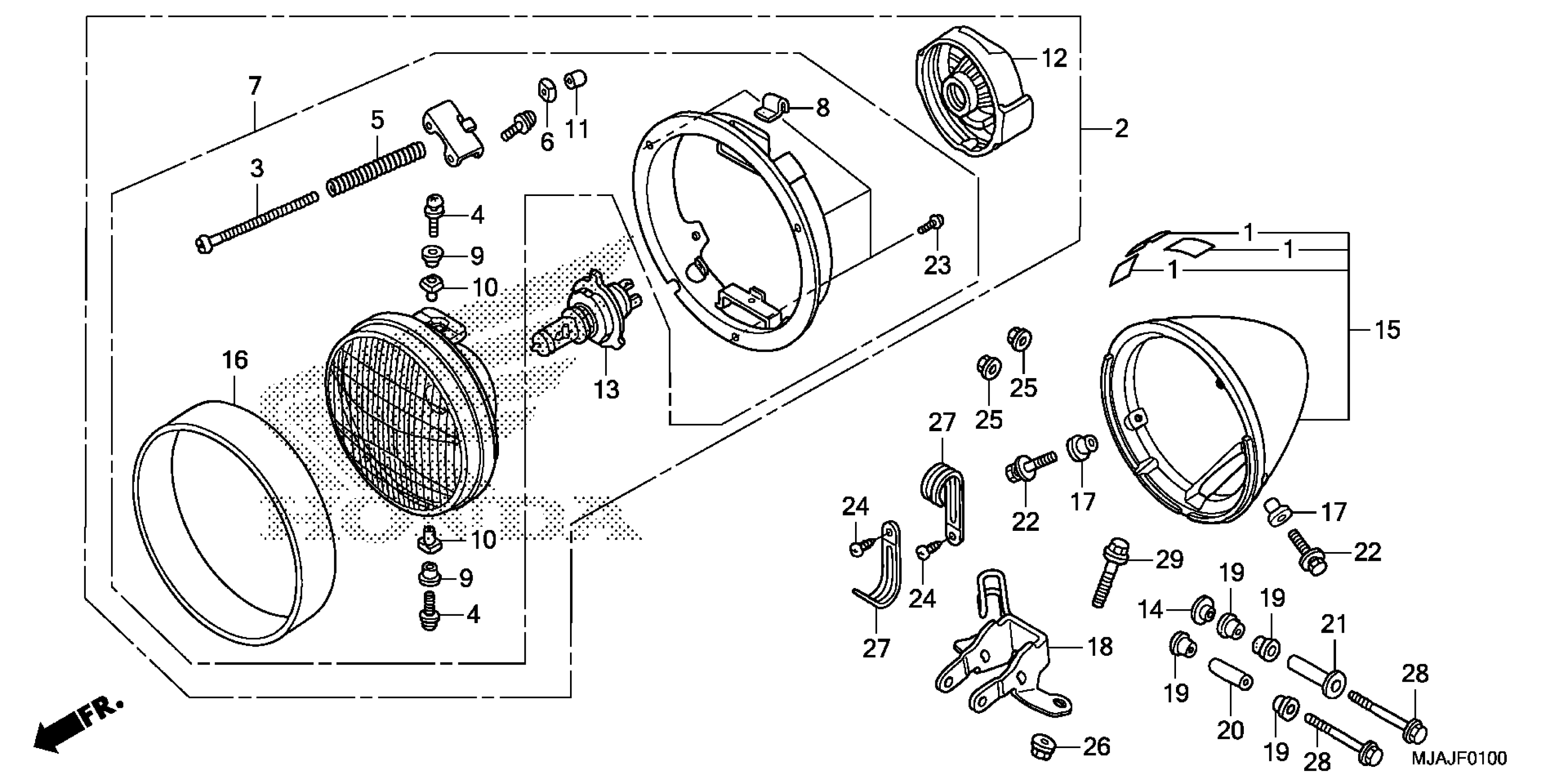 Honda VT750CAC (18) MOTORCYCLE, JPN, VIN# JH2RC501-JK400001 TO JH2RC501-JK499999 HEADLIGHT (1) Diagram