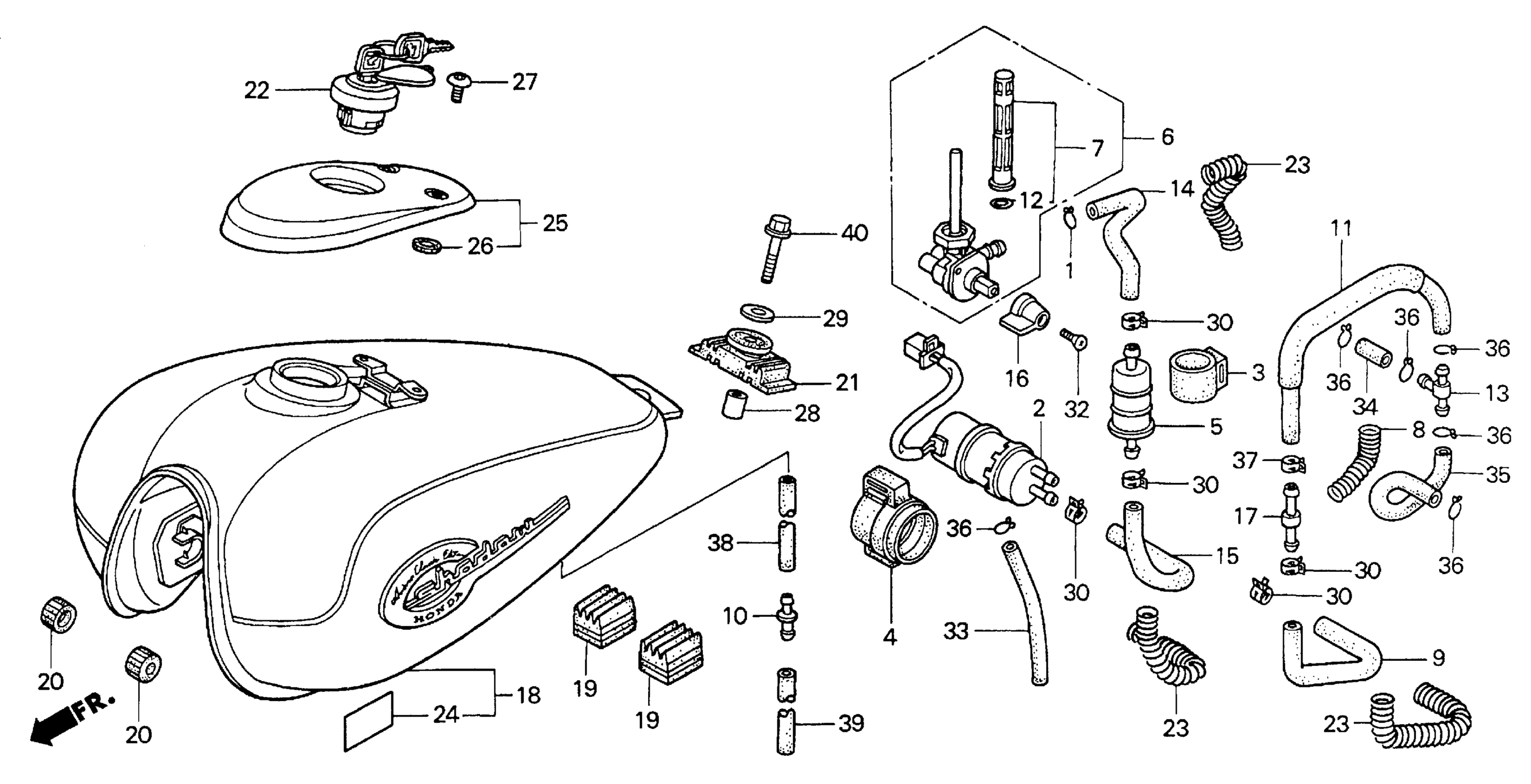 Honda VT750CD2A (99) SHADOWAMERICAN CLASSIC EDITION 750 DELUXE, JPN, VIN# JH2RC446-XM100001 FUEL TANK Diagram