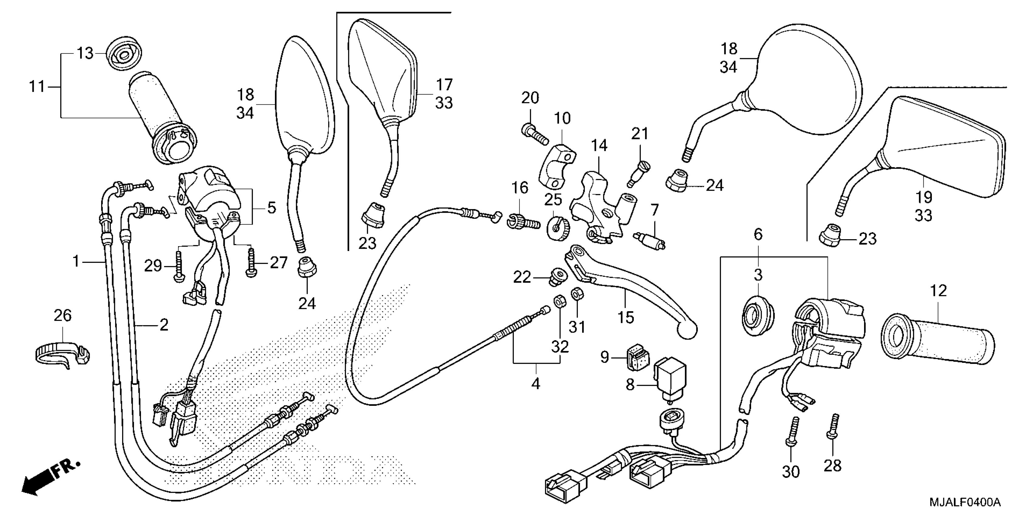 Honda VT750CSAC (20) MOTORCYCLE, JPN, VIN# JH2RC508-LK800001 TO JH2RC508-LK899999 HANDLE LEVER@SWITCH@CABLE Diagram