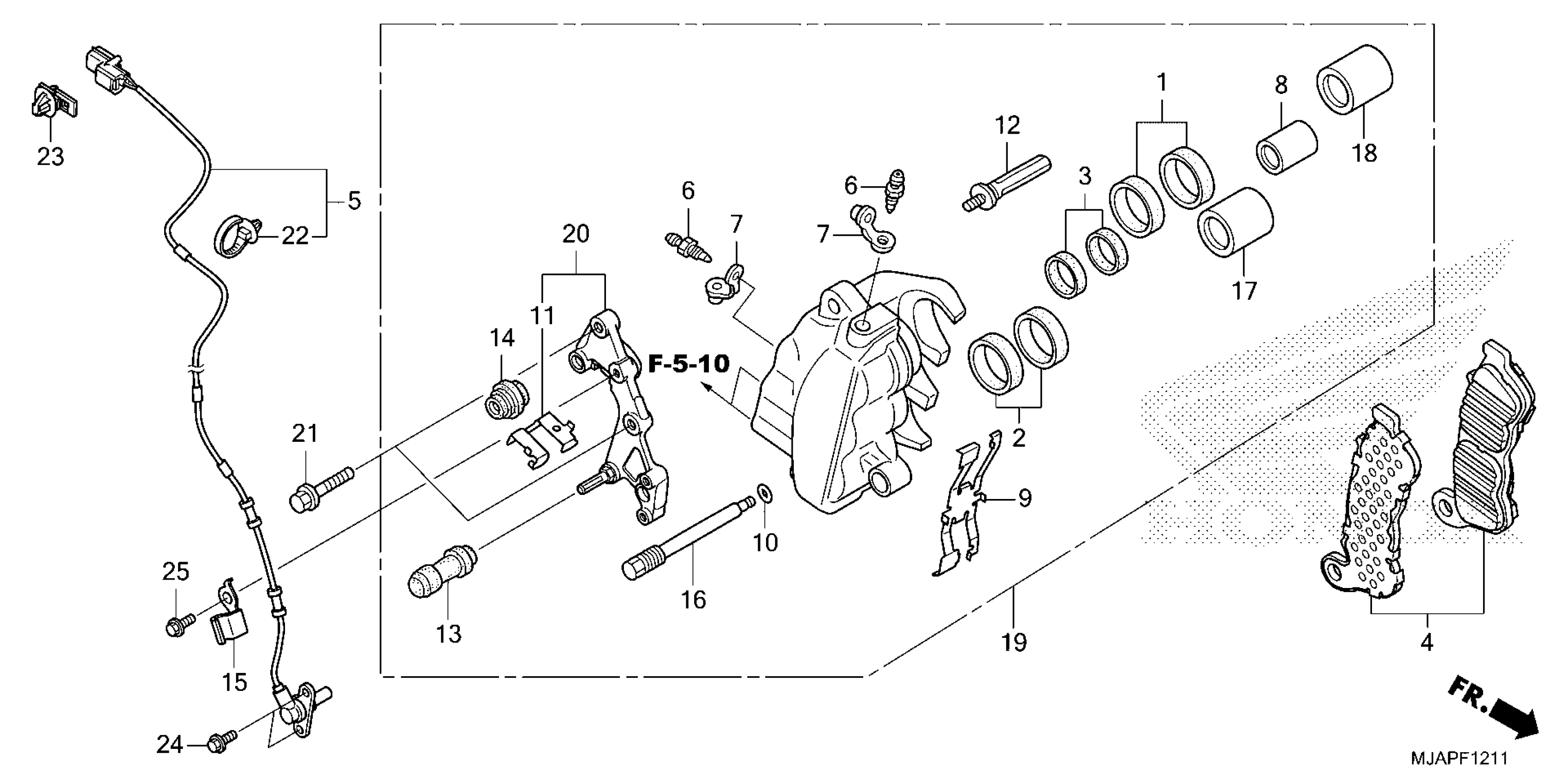 Honda VT750CSAC (23) MOTORCYCLE, JPN, VIN# JH2RC508-PK100001 TO JH2RC508-PK999999 FRONT BRAKE CALIPER (2) Diagram