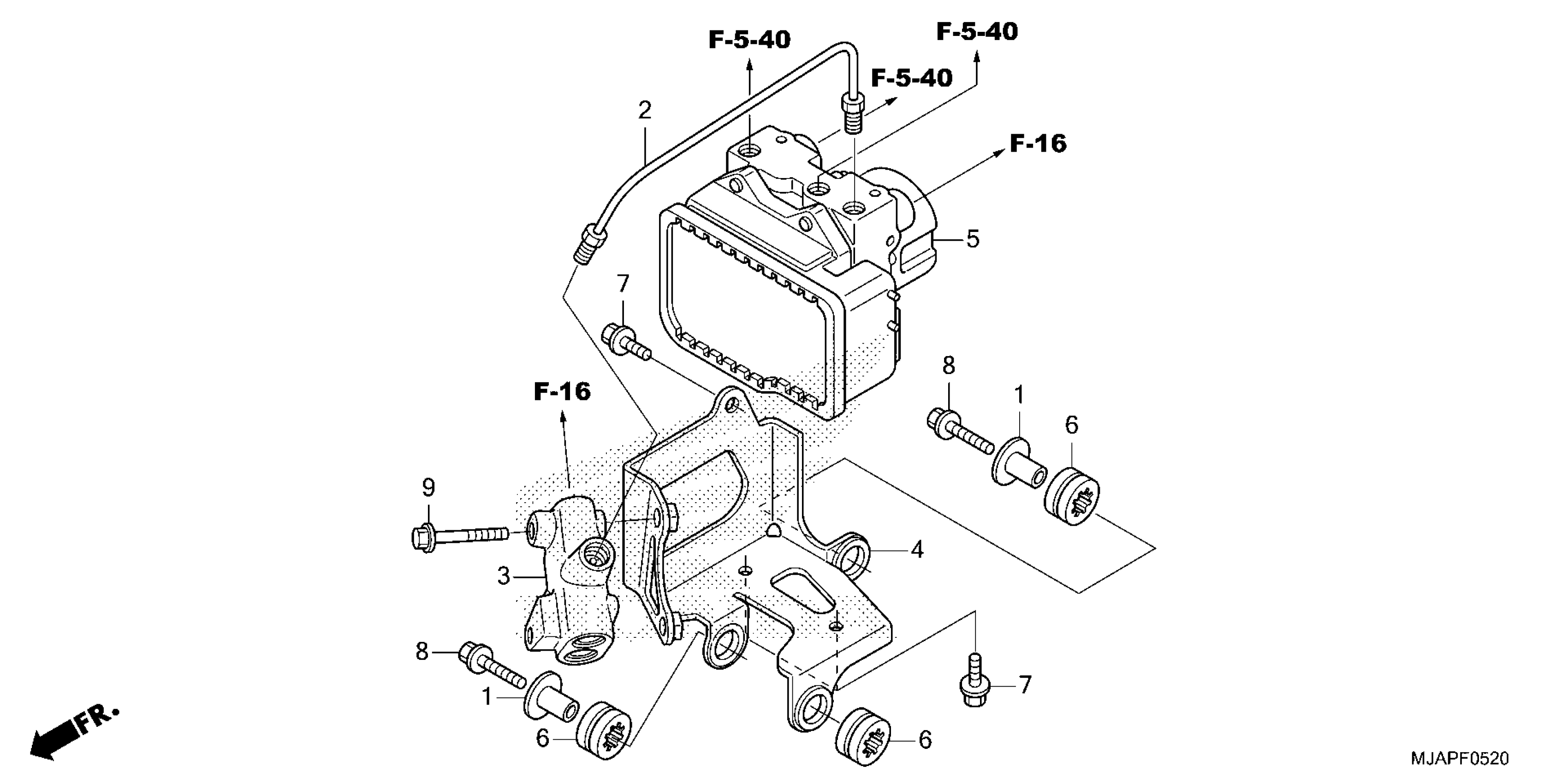 Honda VT750CSAC (24) MOTORCYCLE, JPN, VIN# JH2RC508-RK200001 TO JH2RC508-RK999999 ABS MODULATOR Diagram