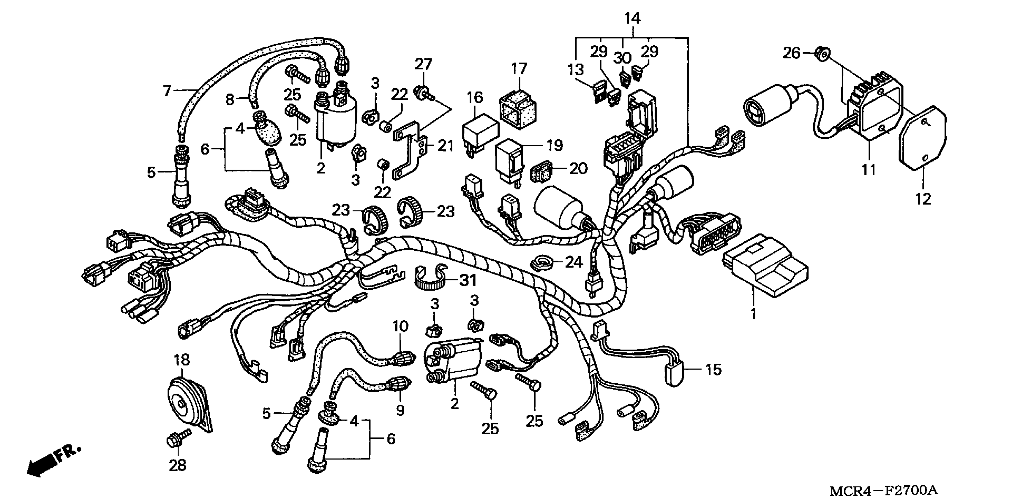 Honda VT750DCA (01) SHADOW SPIRIT 750, JPN, VIN# JH2RC440-1K400001 TO JH2RC440-1K449999 WIRE HARNESS Diagram