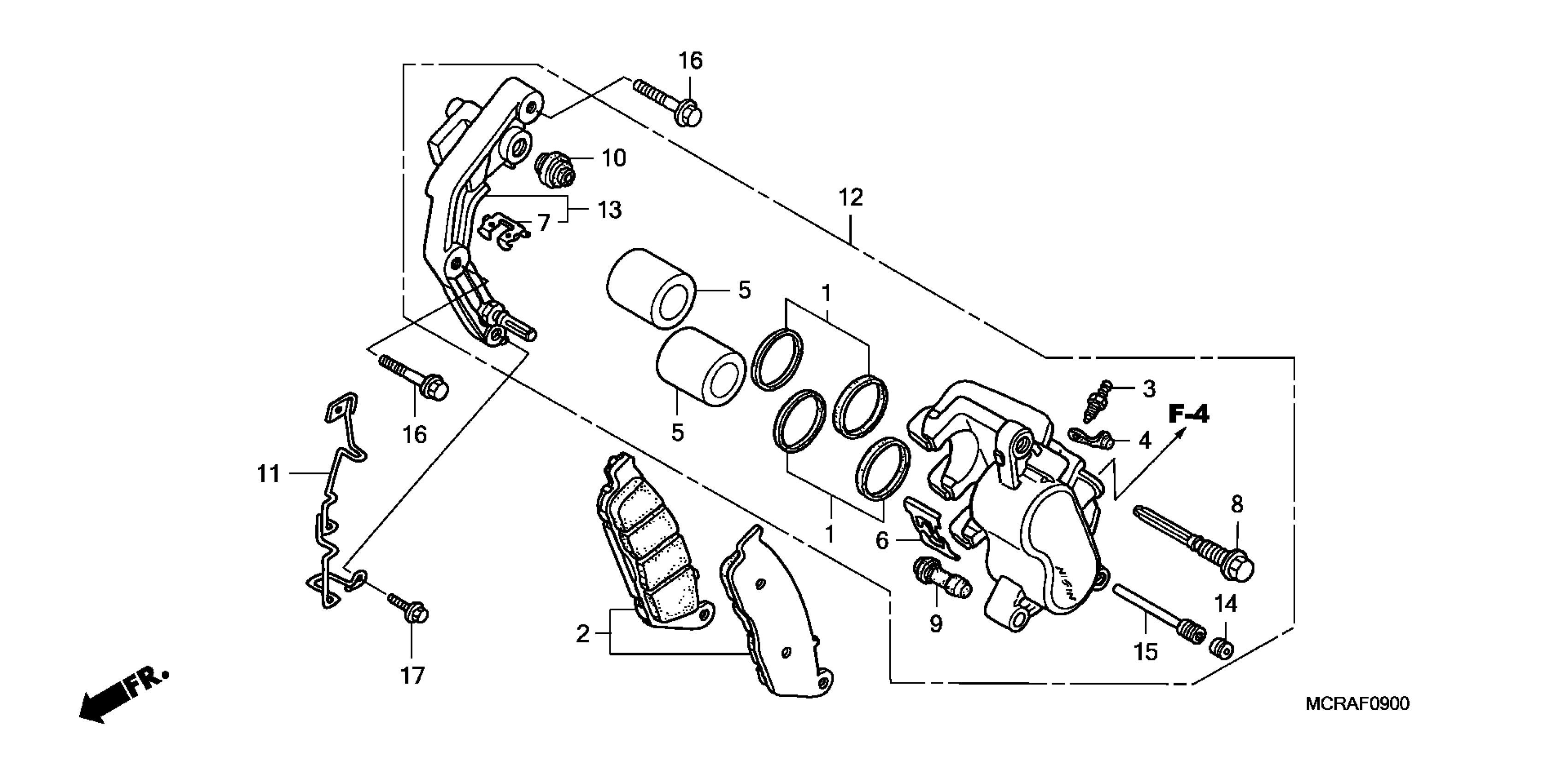 Honda VT750DCAA (07) SHADOW SPIRIT, JPN, VIN# JH2RC440-7M100001 FRONT BRAKE CALIPER Diagram