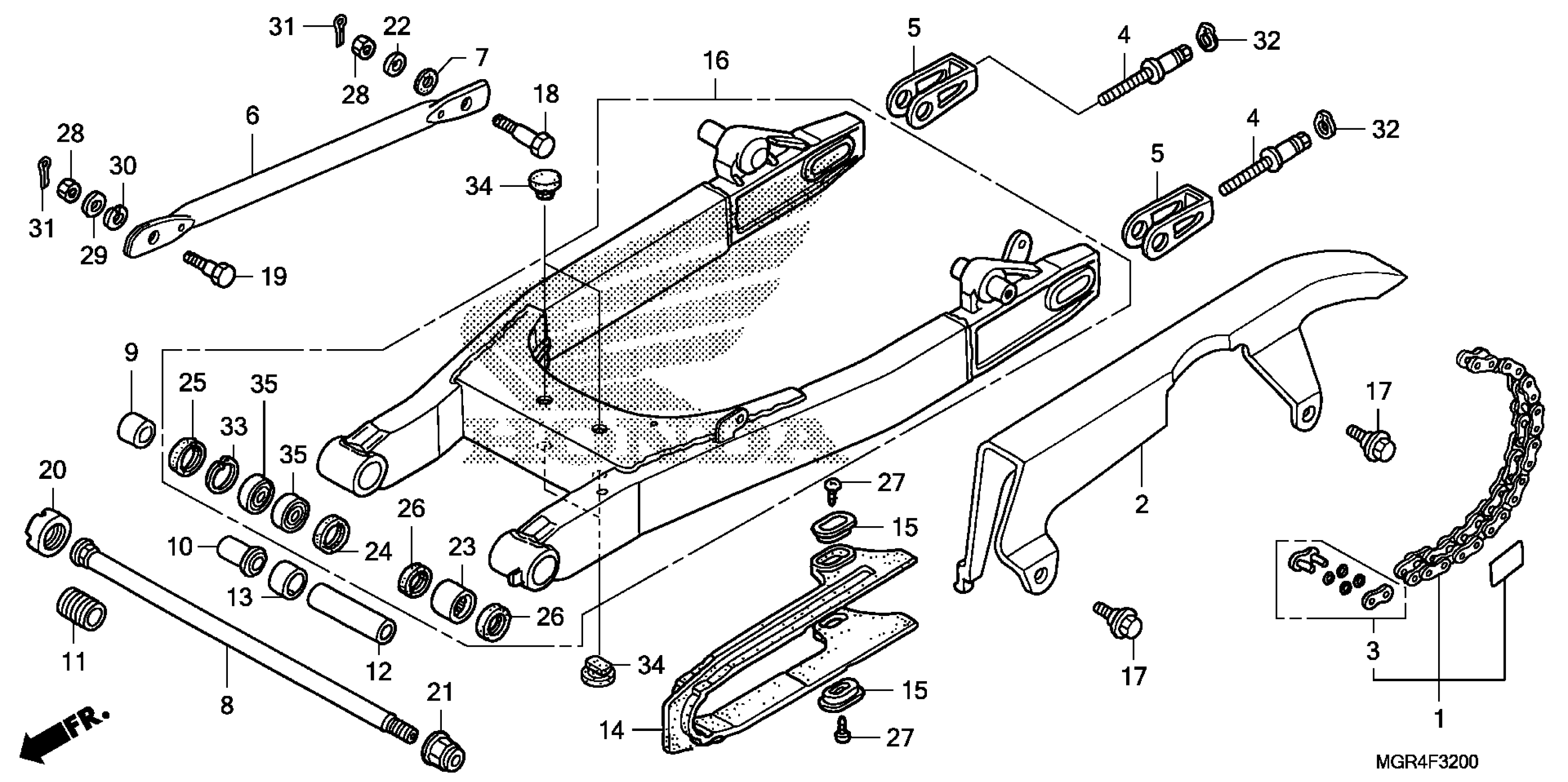 Honda VT750RSA (10) SHADOW RS, JPN, VIN# JH2RC580-AK000001 TO JH2RC580-AK099999 SWINGARM Diagram