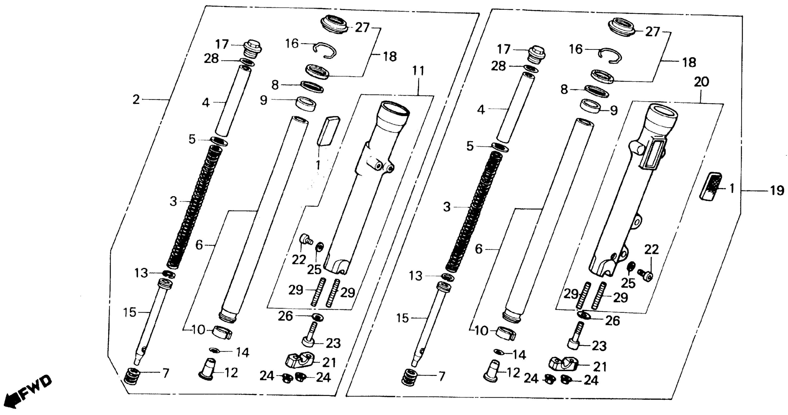 Honda VT800CA (88) SHADOW 800, USA, VIN# 1HFRC320-JA000001 FRONT FORK Diagram