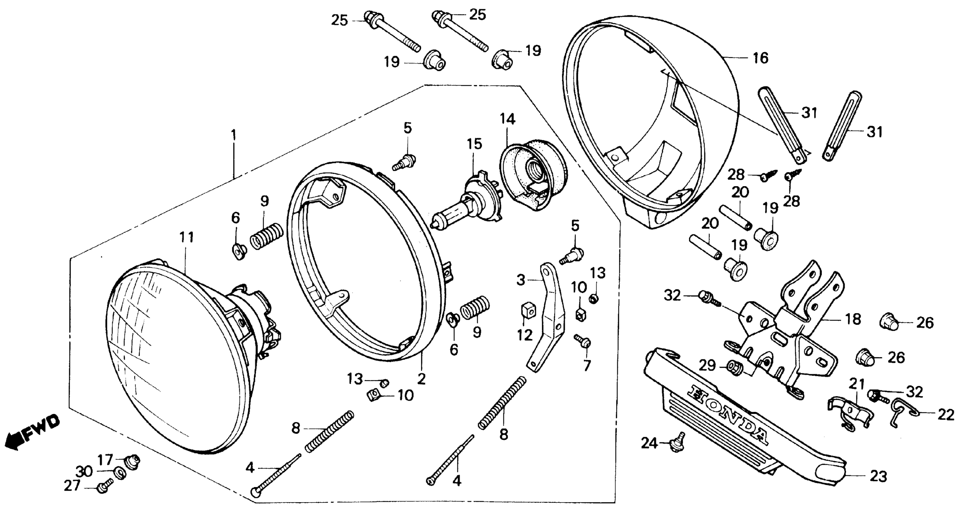 Honda VT800CA (88) SHADOW 800, USA, VIN# 1HFRC320-JA000001 HEADLIGHT Diagram