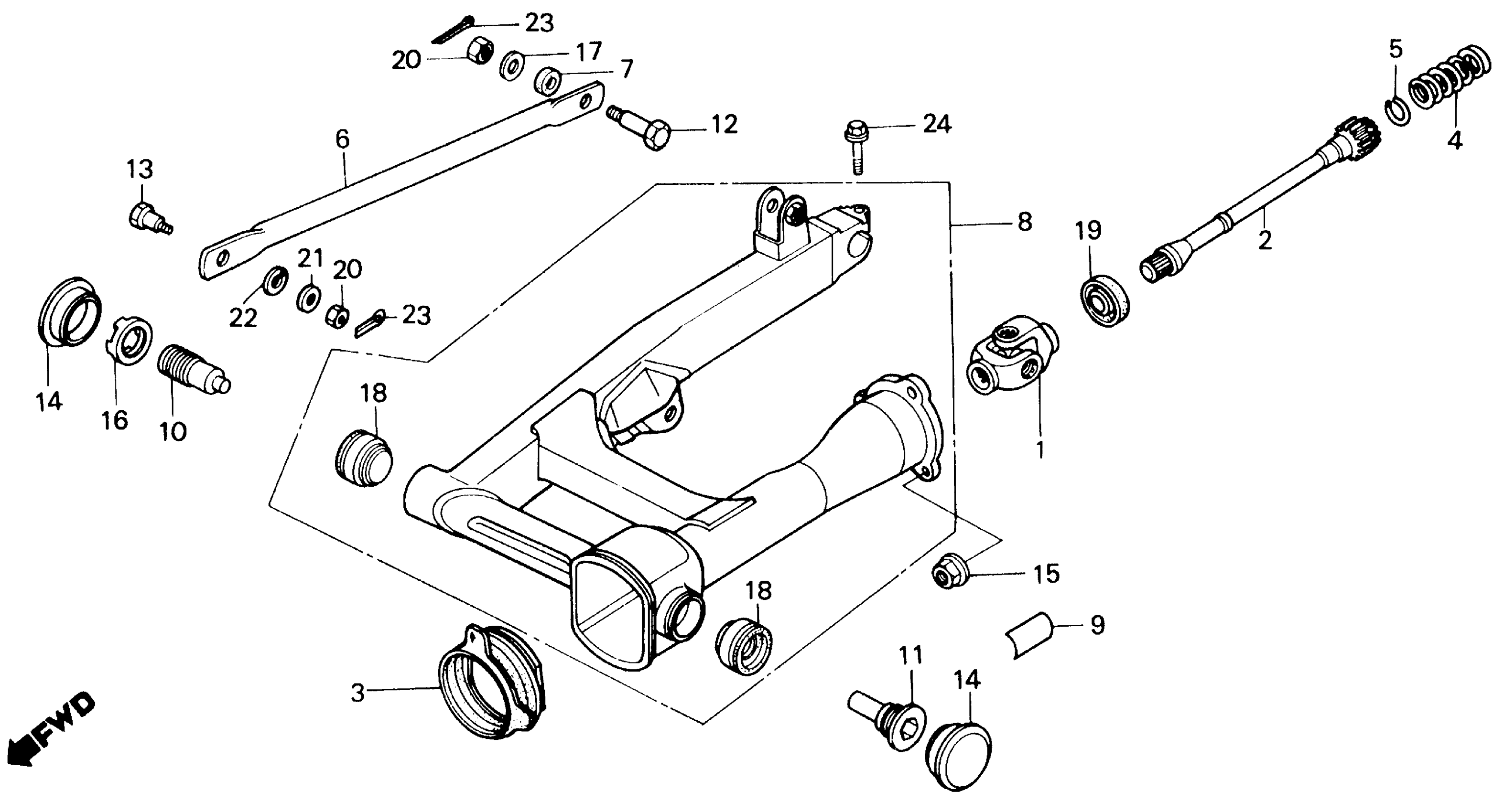 Honda VT800CA (88) SHADOW 800, USA, VIN# 1HFRC320-JA000001 SWINGARM Diagram