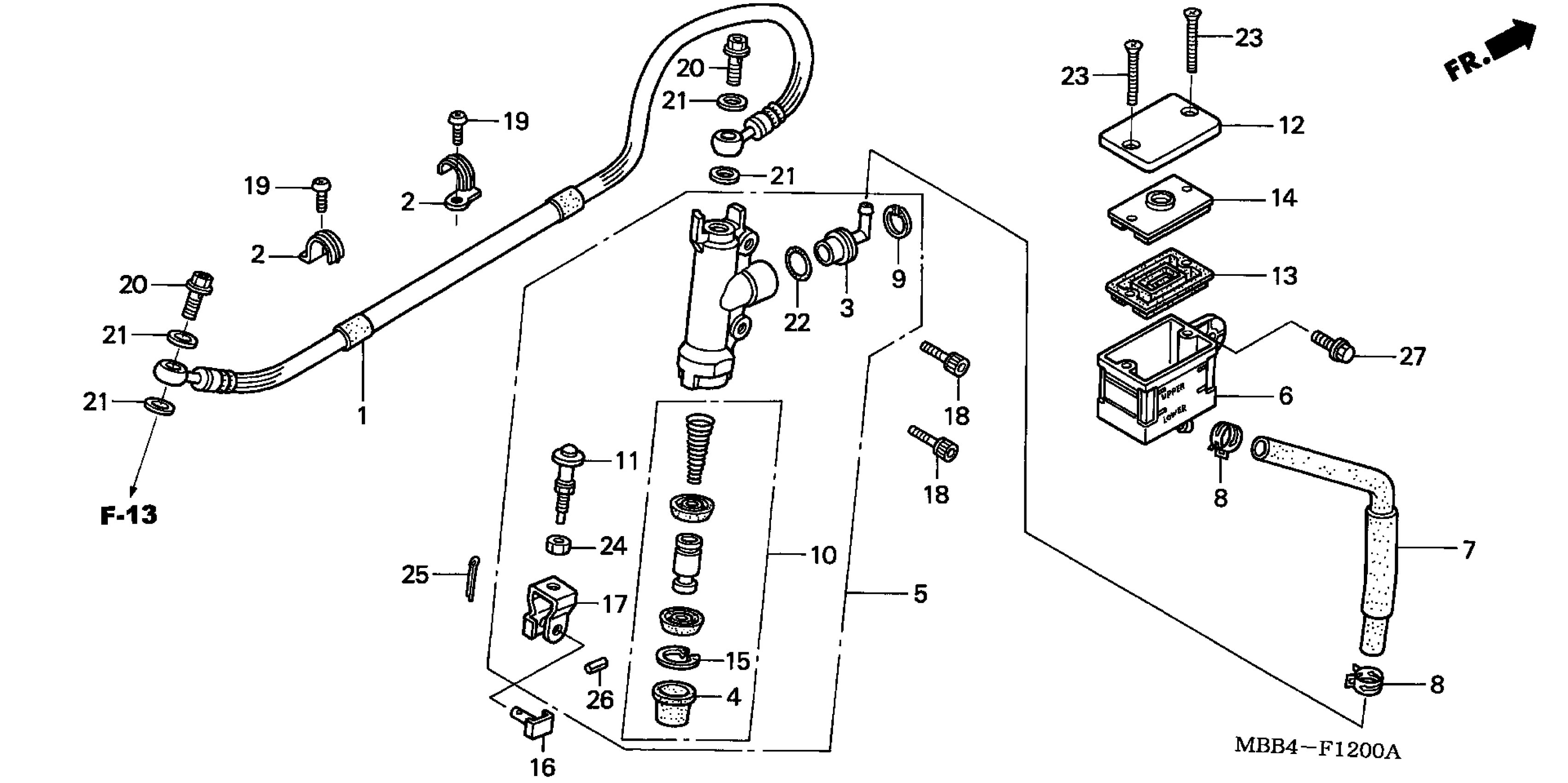 Honda VTR1000FAC (05) MOTORCYCLE, JPN, VIN# JH2SC361-5M700001 REAR BRAKE MASTER @CYLINDER Diagram