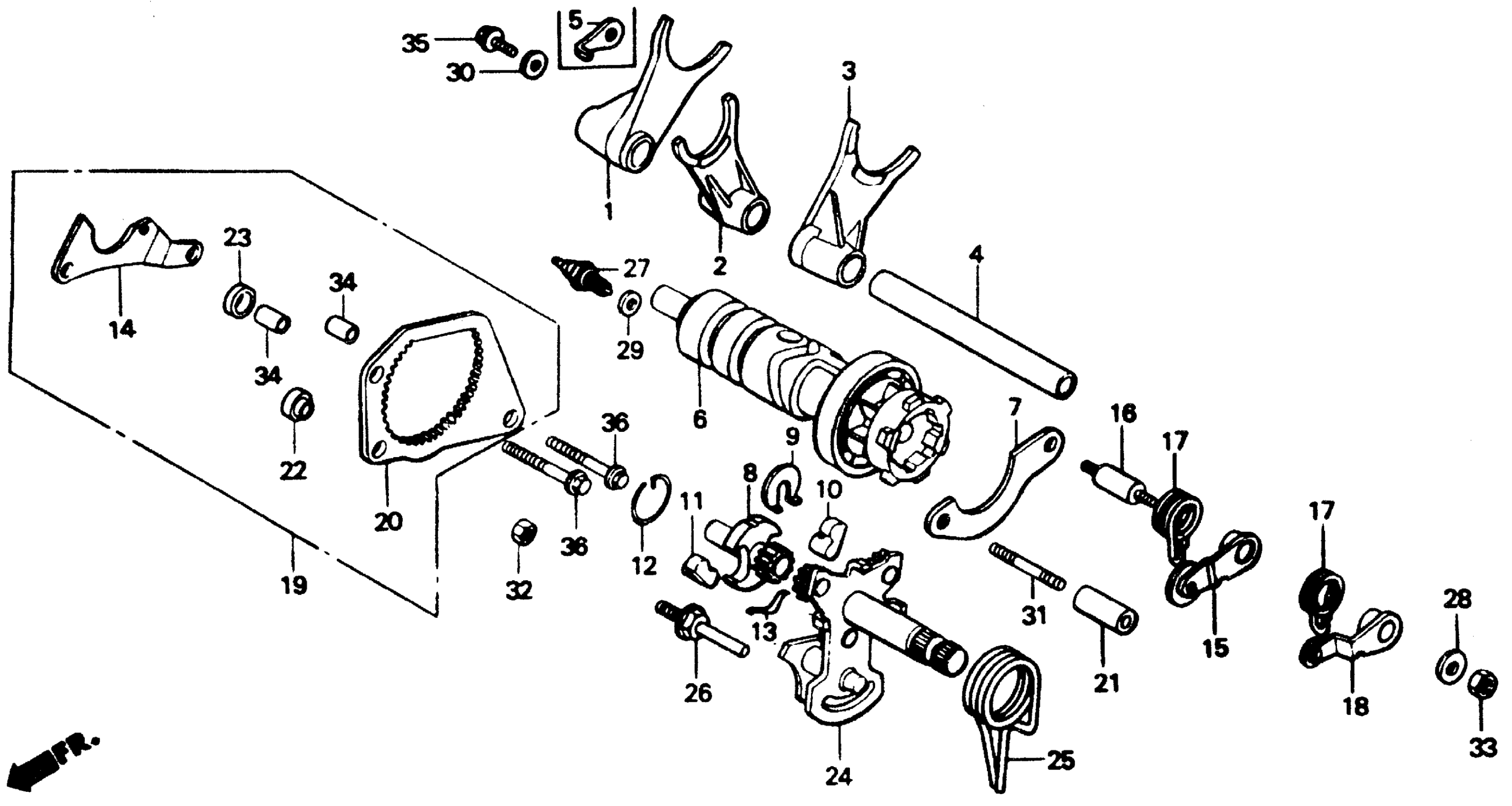 Honda VTR250A (88) INTERCEPTOR VTR, JPN, VIN# JH2MC150-JM000004 TO JH2MC150-JM001554 GEARSHIFT DRUM Diagram