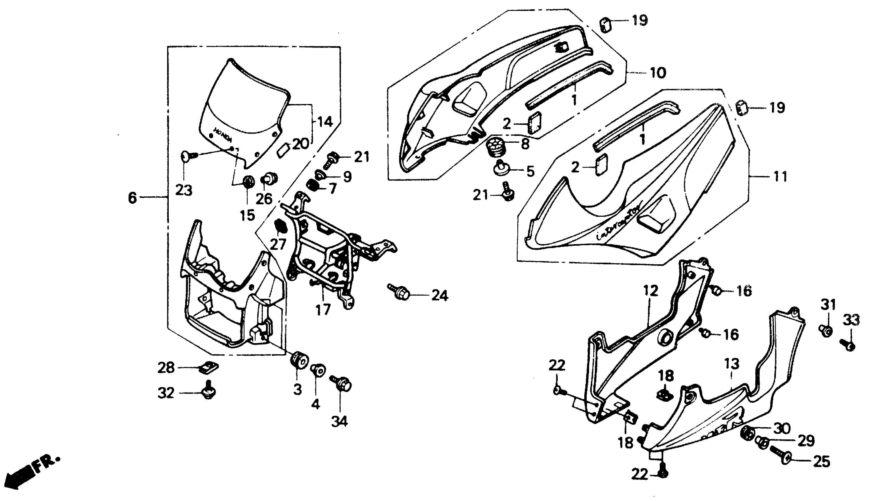 Honda VTR250A (89) VTR, JPN, VIN# JH2MC150-KM100001 TO JH2MC150-KM103810 COWL Diagram