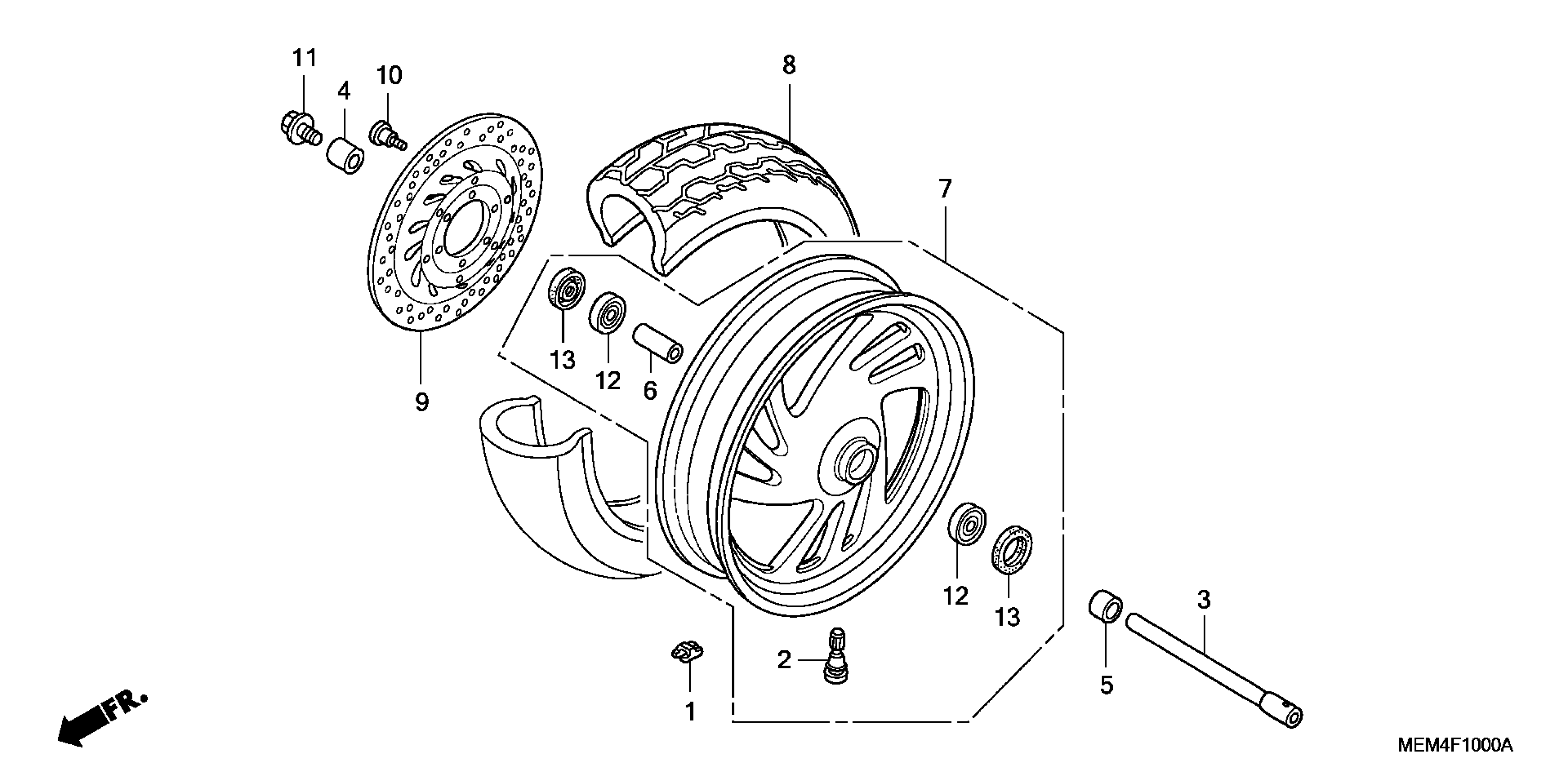 Honda VTX1300CA (09) VTX, USA, VIN# 1HFSC550-9A500001 FRONT WHEEL Diagram