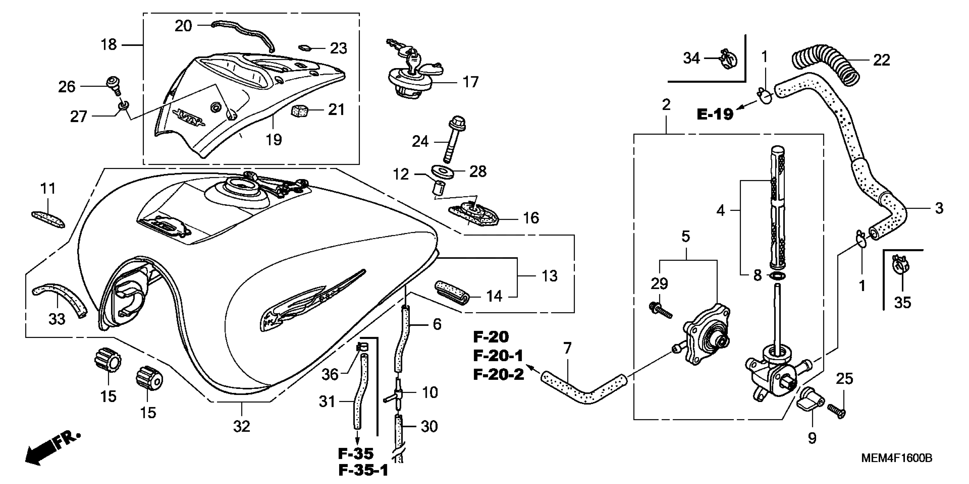 Honda VTX1300CAC (04) VTX, USA, VIN# 1HFSC551-4A000001 TO 1HFSC551-4A099999 FUEL TANK Diagram