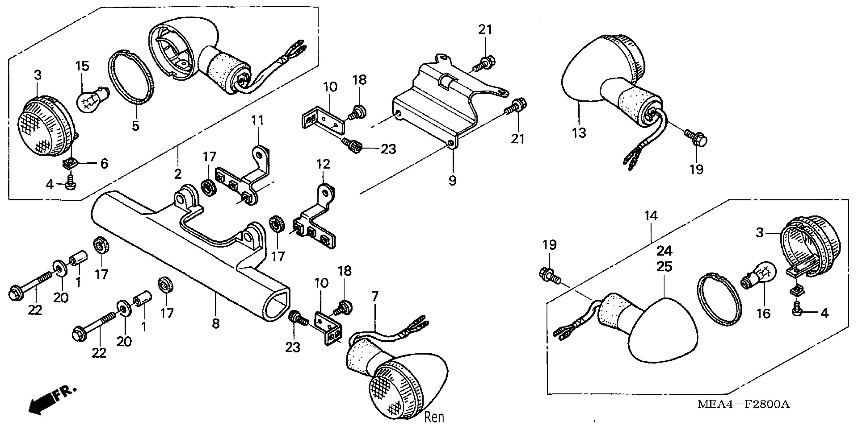 Honda VTX1300RA (06) MOTORCYCLE, USA, VIN# 1HFSC526-6A300001 TO 1HFSC526-6A399999 FRONT@REAR TURN SIGNAL Diagram