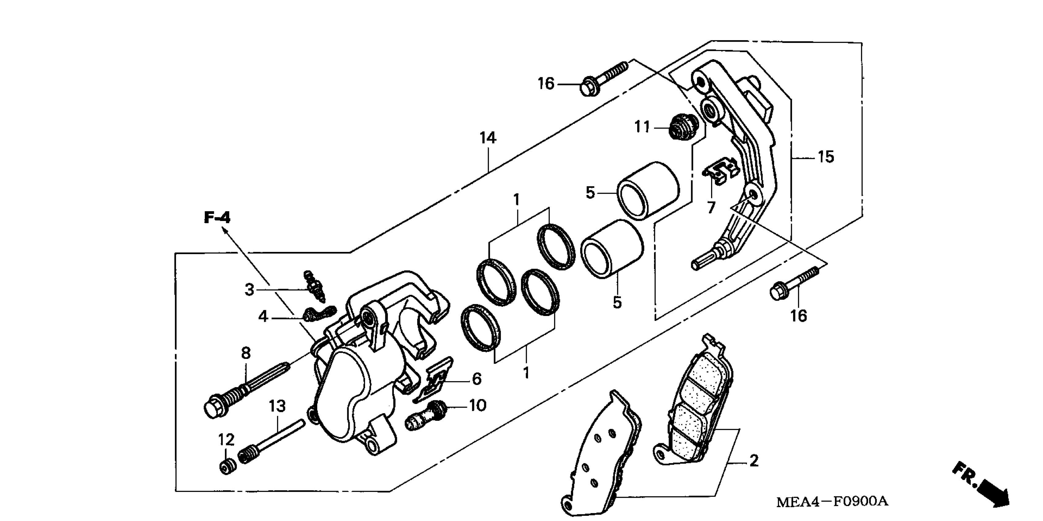 Honda VTX1300RA (07) MOTORCYCLE, USA, VIN# 1HFSC526-7A400001 FRONT BRAKE CALIPER Diagram