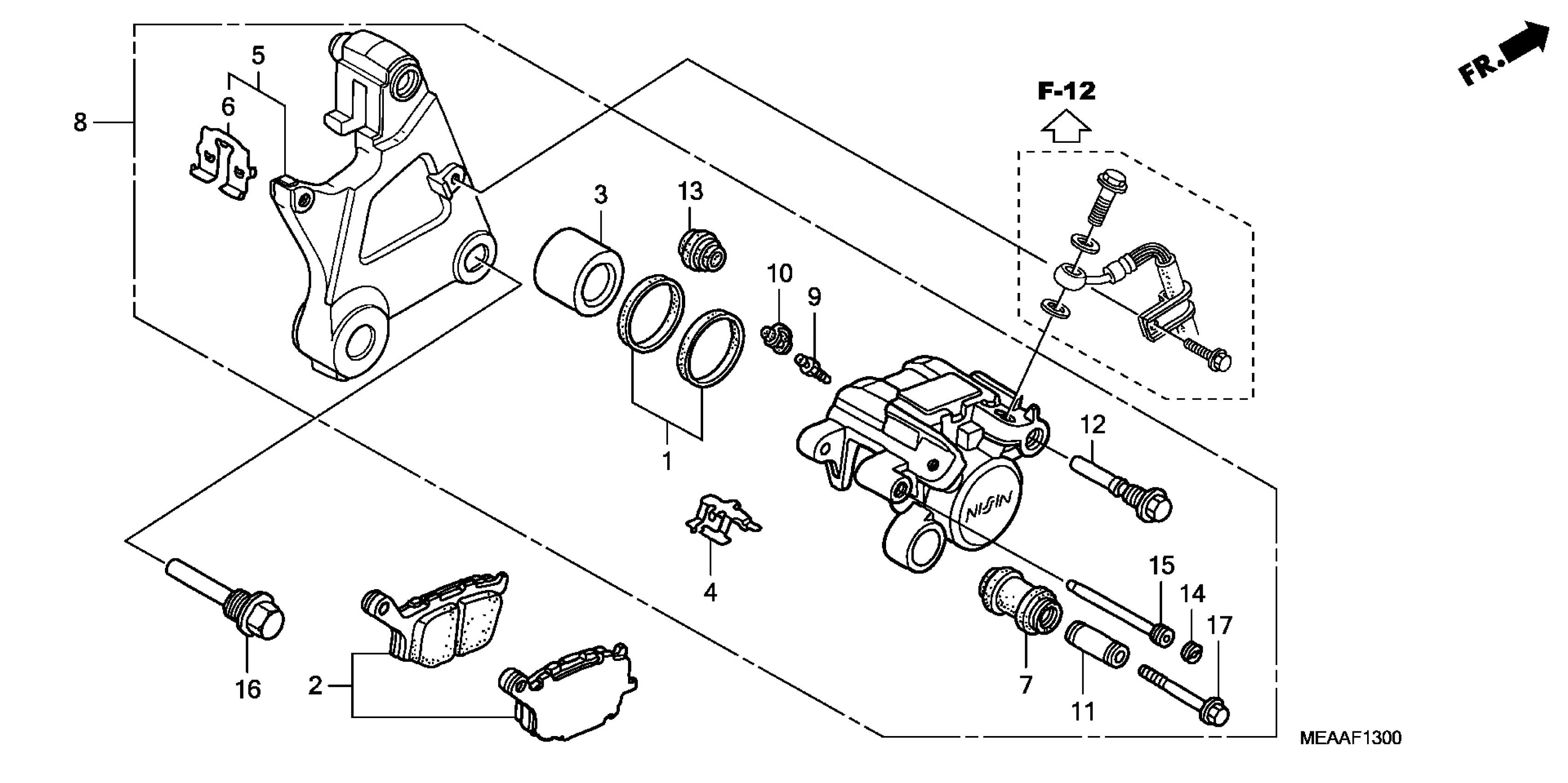 Honda VTX1300RA (09) VTX, USA, VIN# 1HFSC526-9A600001 REAR BRAKE CALIPER Diagram