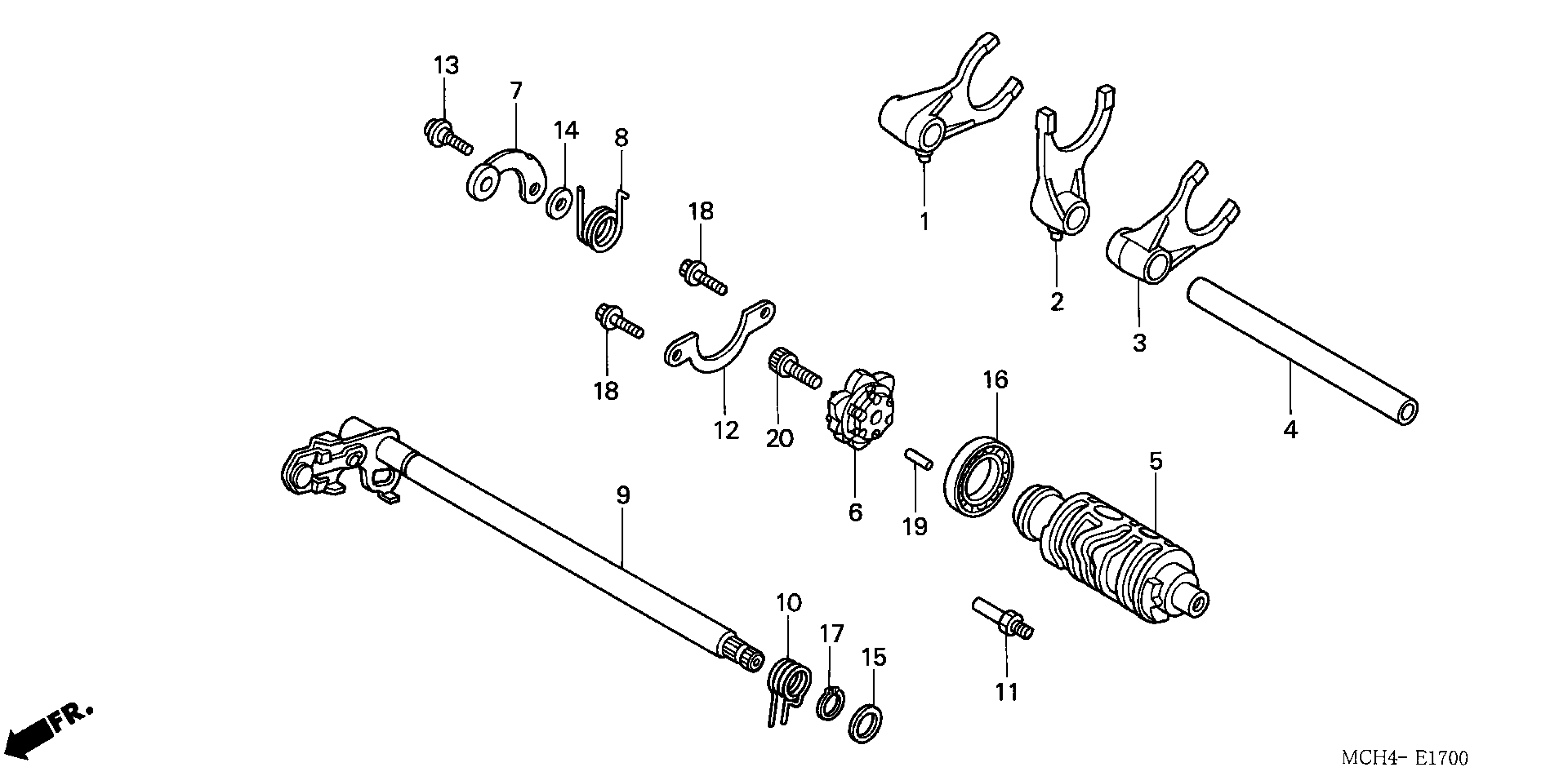 Honda VTX1800C1A (07) MOTORCYCLE, USA, VIN# 1HFSC460-7A500001 TO 1HFSC460-7A599999 GEARSHIFT DRUM Diagram