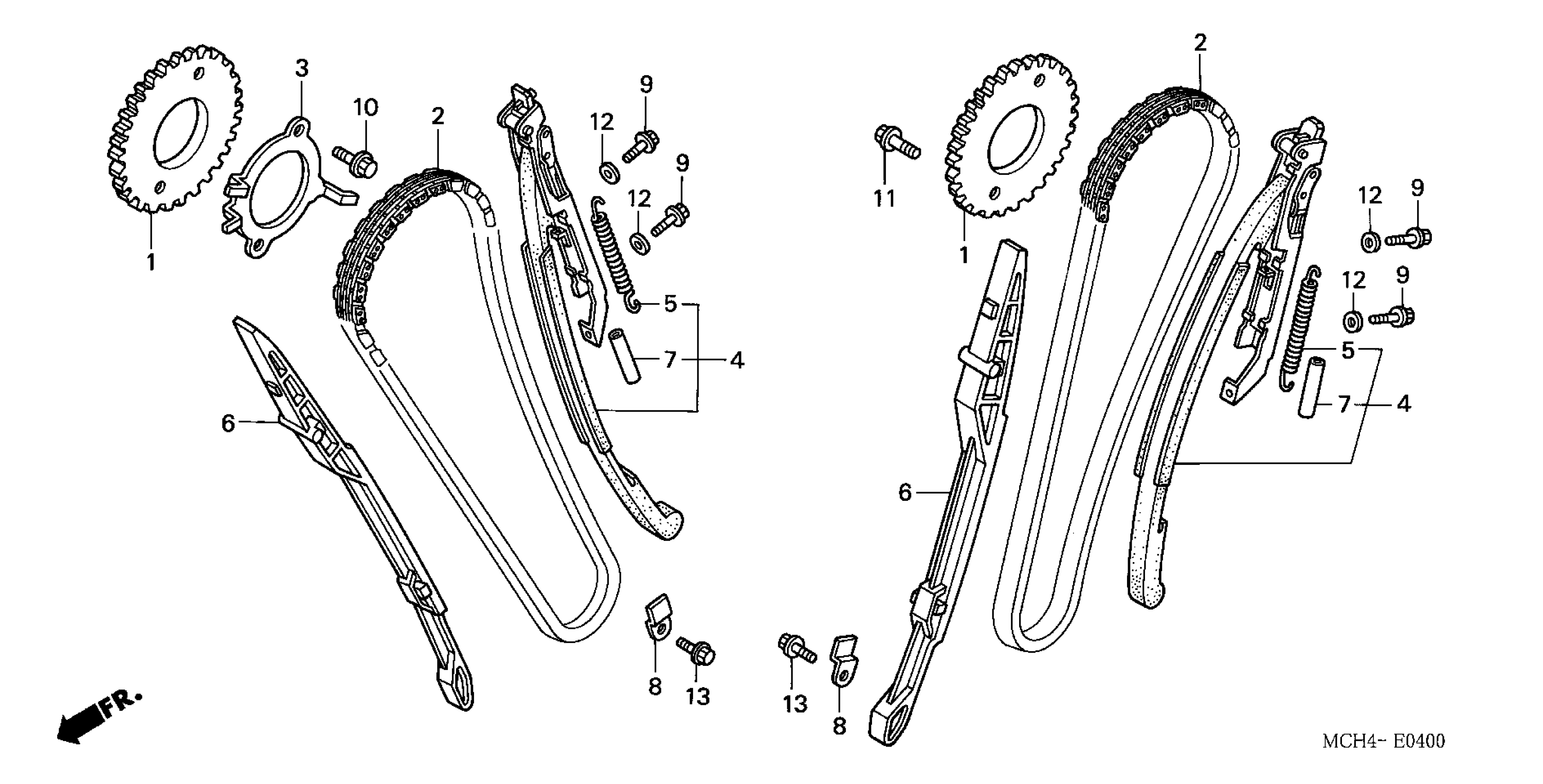 Honda VTX1800F1A (06) MOTORCYCLE, USA, VIN# 1HFSC46B-6A400001 TO 1HFSC46B-6A499999 CAM CHAIN + TENSIONER Diagram
