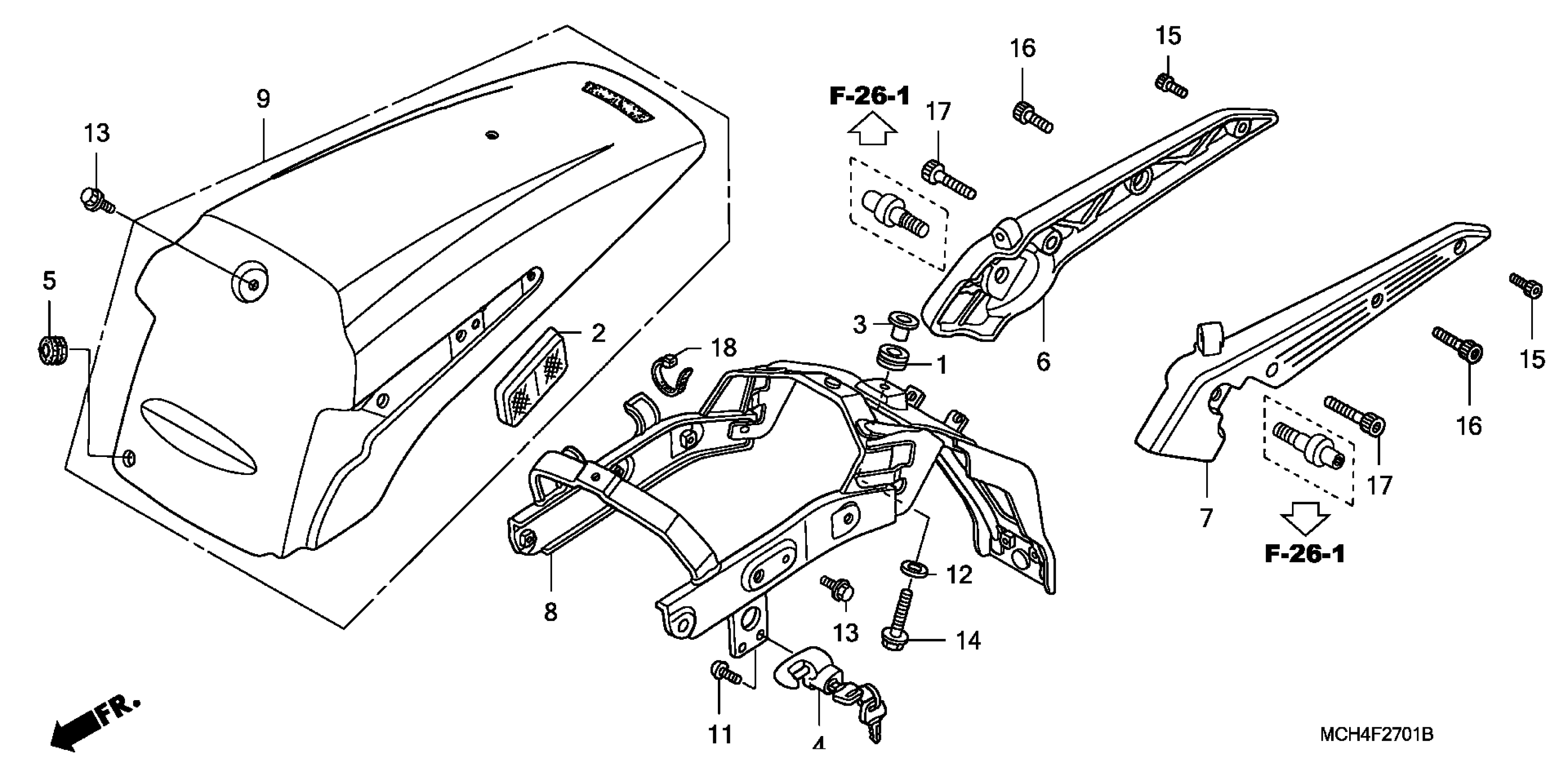 Honda VTX1800F1A (08) MOTORCYCLE, USA, VIN# 1HFSC46B-8A600001 REAR FENDER + GRAB RAIL (VTX1800F) Diagram