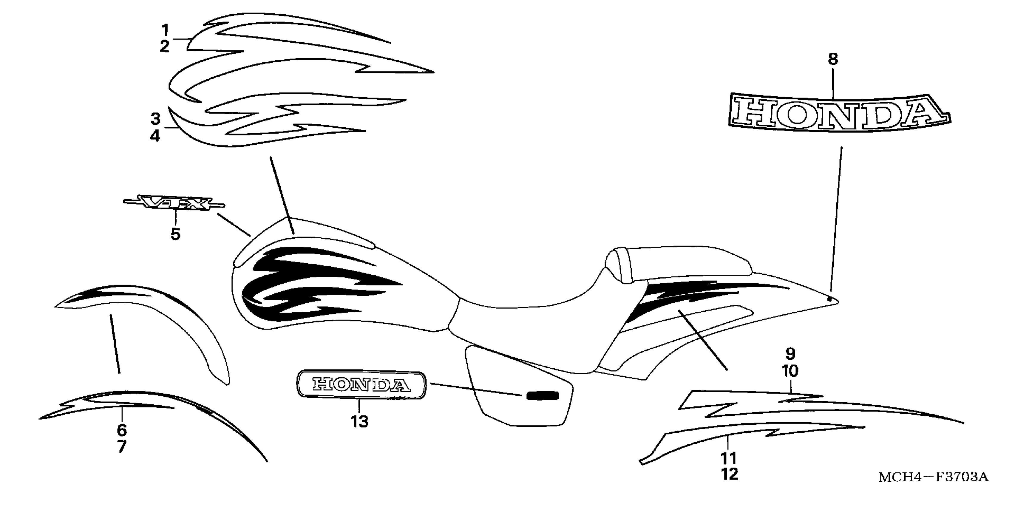 Honda VTX1800F1A (08) MOTORCYCLE, USA, VIN# 1HFSC46B-8A600001 STRIPE + MARK (VTX1800F) Diagram