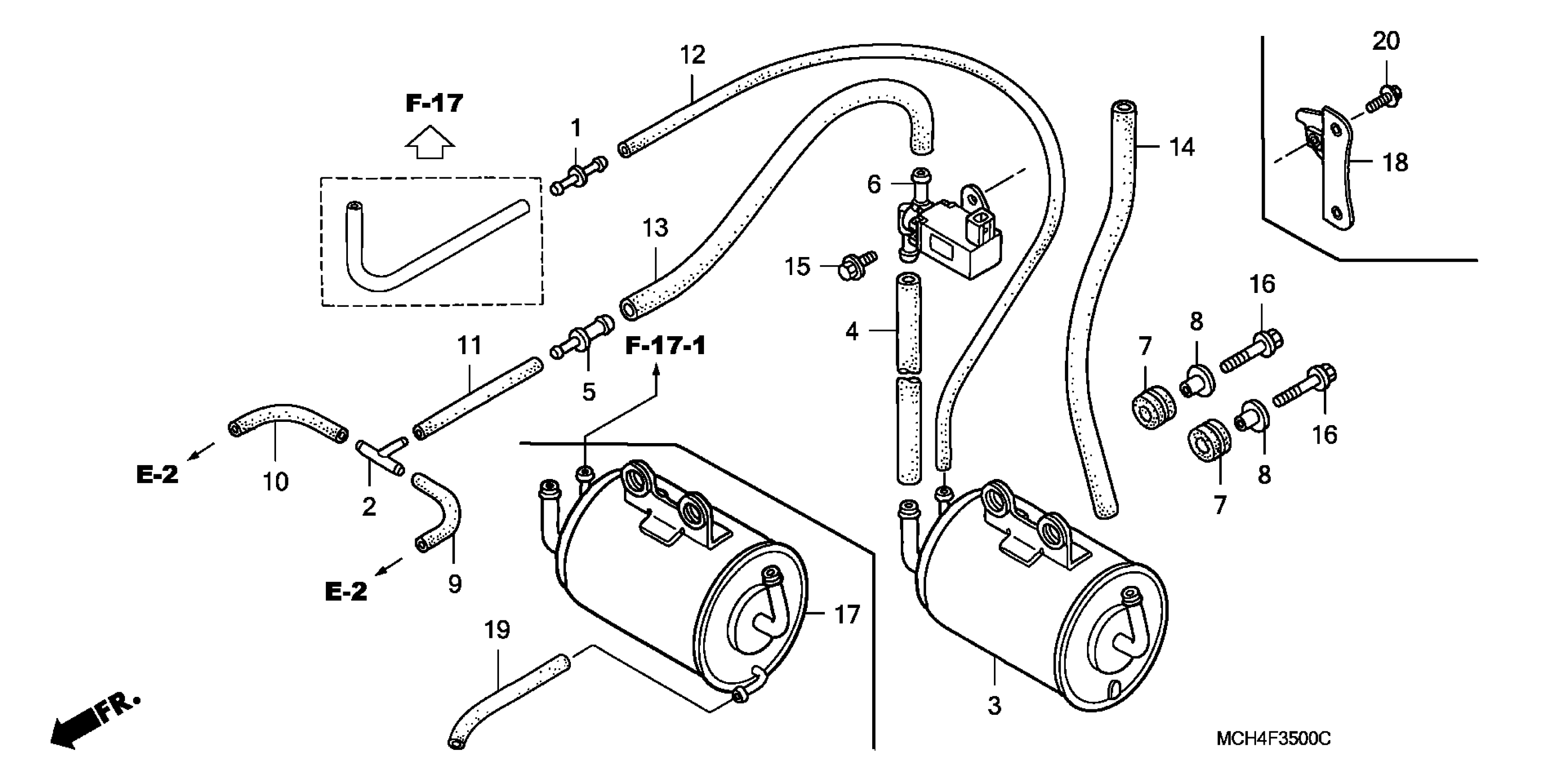 Honda VTX1800F1AC (06) MOTORCYCLE, USA, VIN# 1HFSC46D-6A400001 TO 1HFSC46D-6A499999 EVAP CANISTER (AC) Diagram
