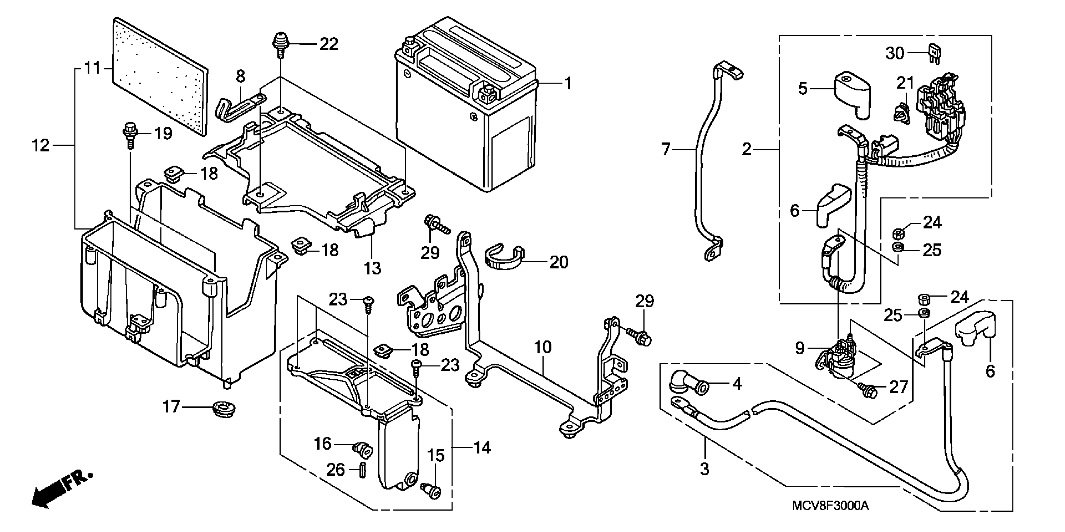 Honda VTX1800N11A (08) MOTORCYCLE, USA, VIN# 1HFSC49A-8A600001 BATTERY Diagram