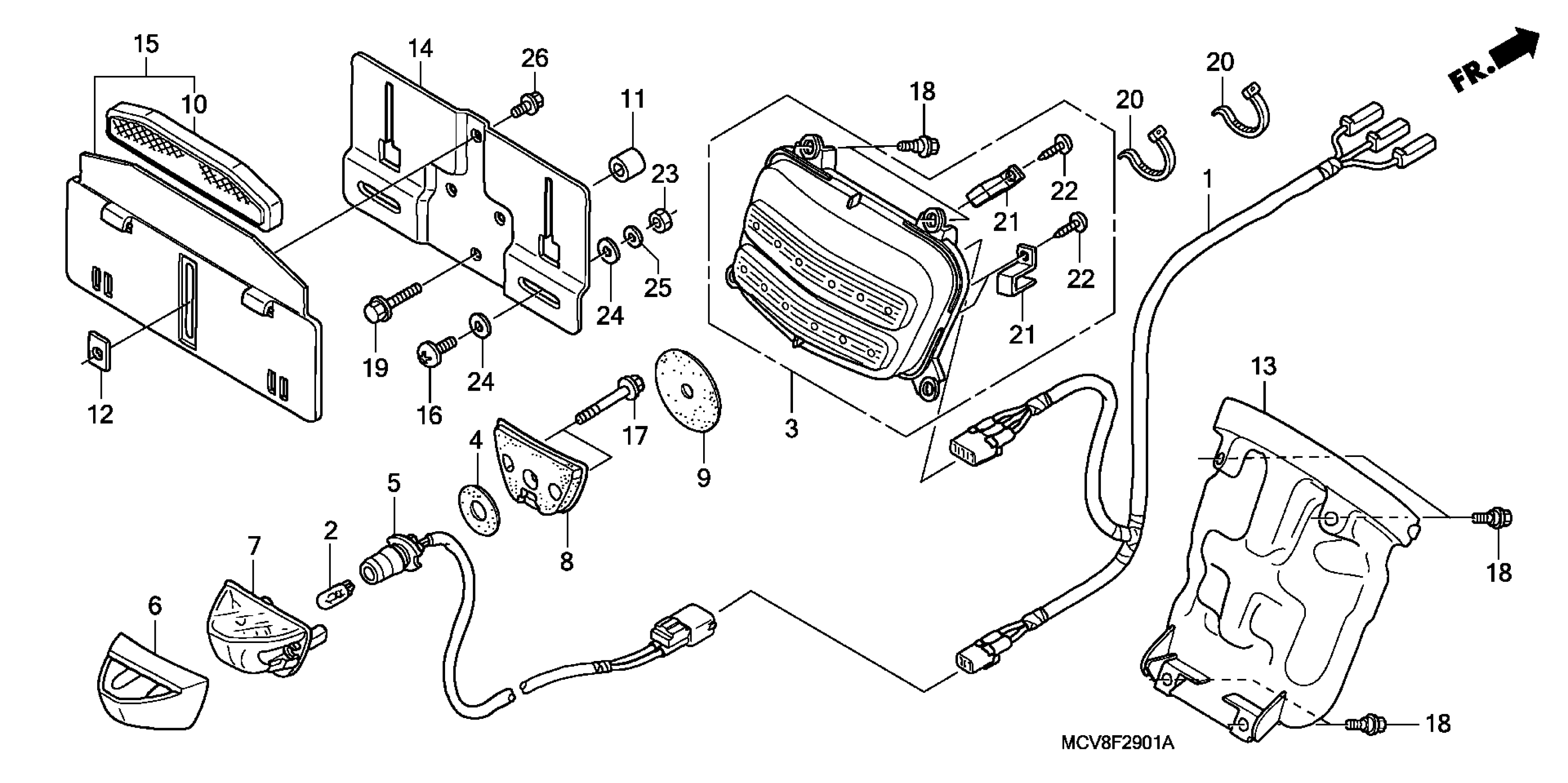 Honda VTX1800N11A (08) MOTORCYCLE, USA, VIN# 1HFSC49A-8A600001 TAILLIGHT (2) Diagram