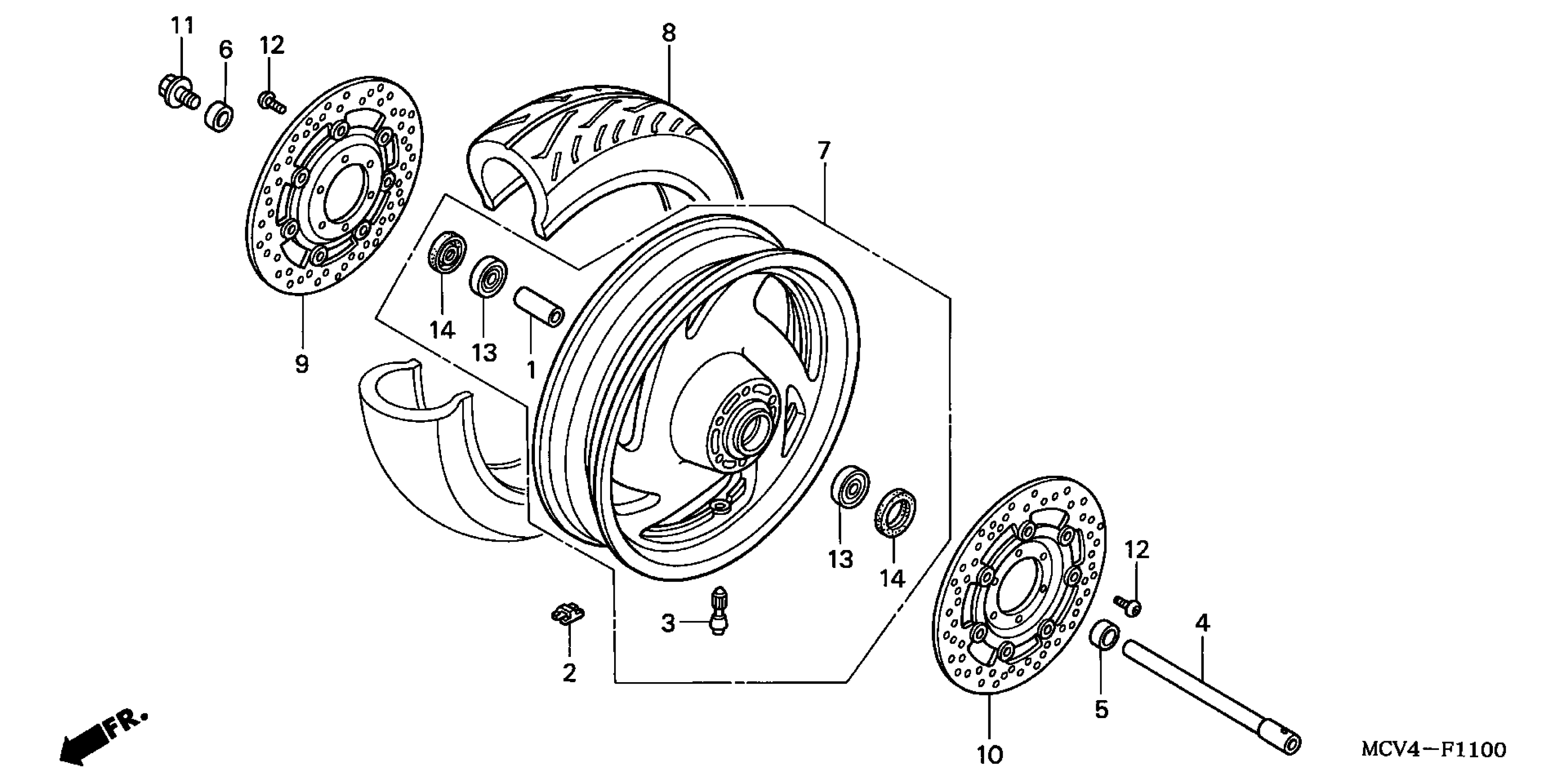 Honda VTX1800N1A (04) MOTORCYCLE, USA, VIN# 1HFSC49A-4A200001 FRONT WHEEL (VTX1800R/N) Diagram