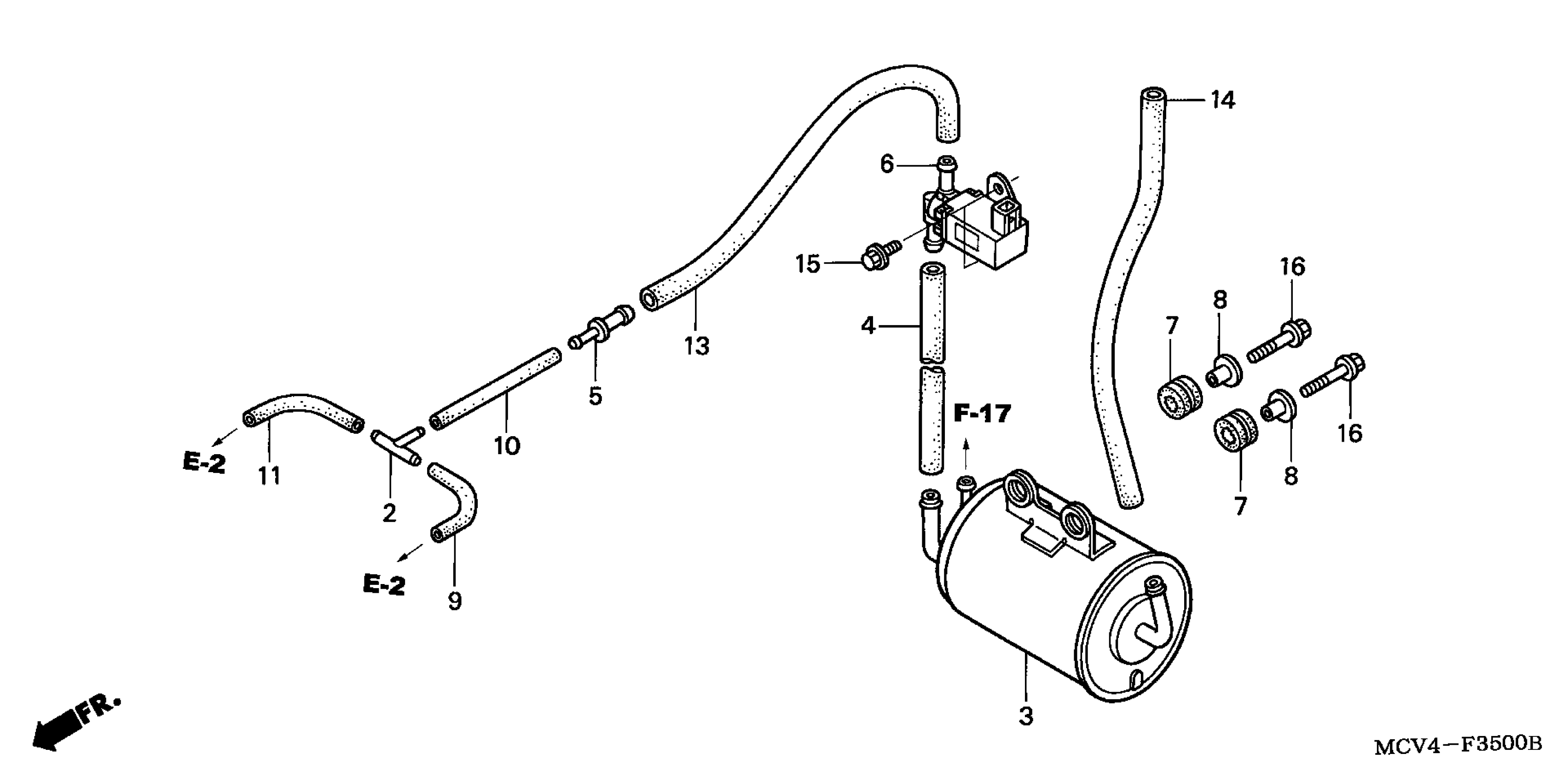Honda VTX1800RAC (03) MOTORCYCLE, USA, VIN# 1HFSC491-3A100001 EVAP CANISTER (AC) Diagram