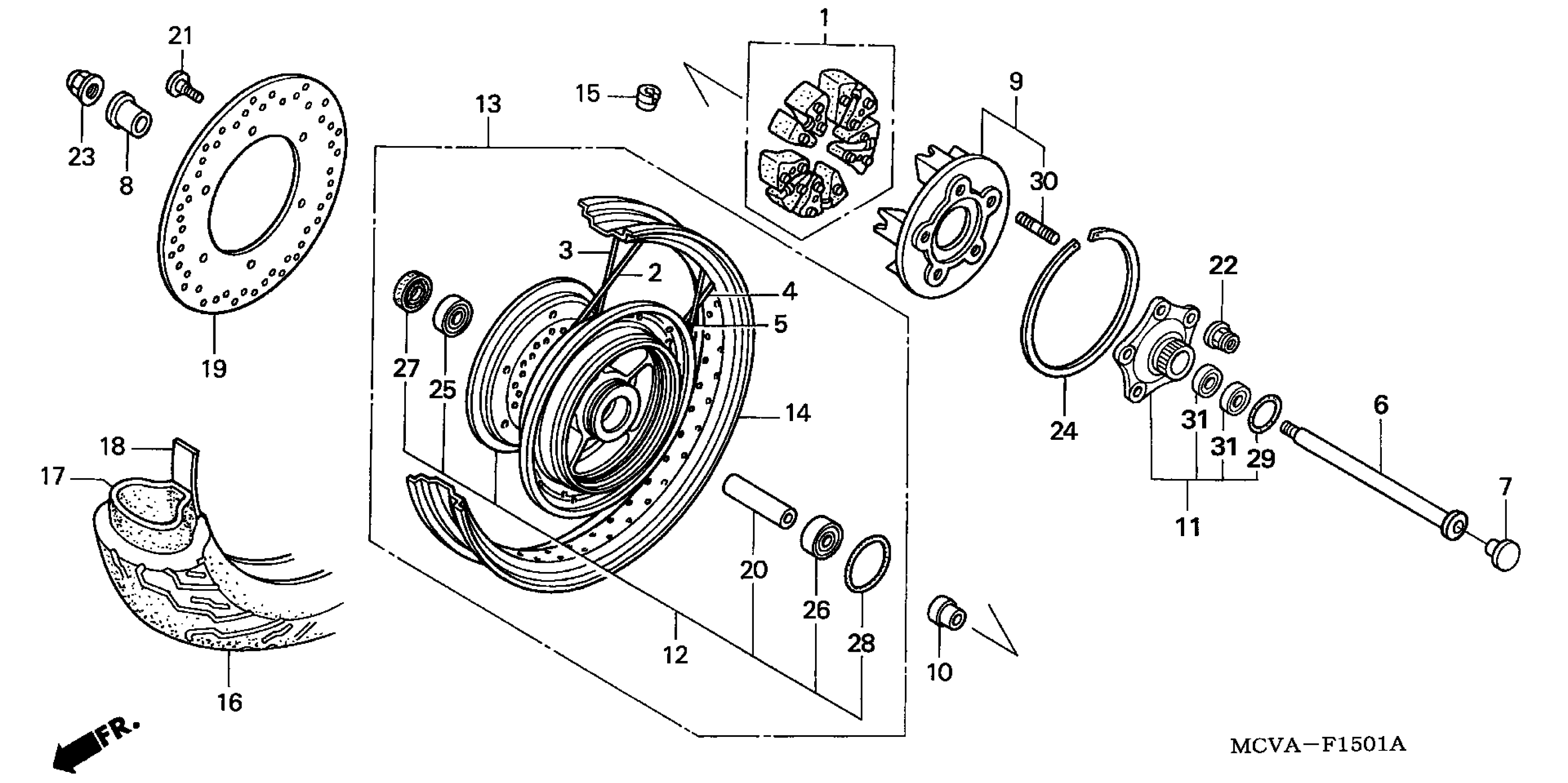 Honda VTX1800S3A (05) MOTORCYCLE, USA, VIN# 1HFSC49N-5A300001 REAR WHEEL (VTX1800S) Diagram