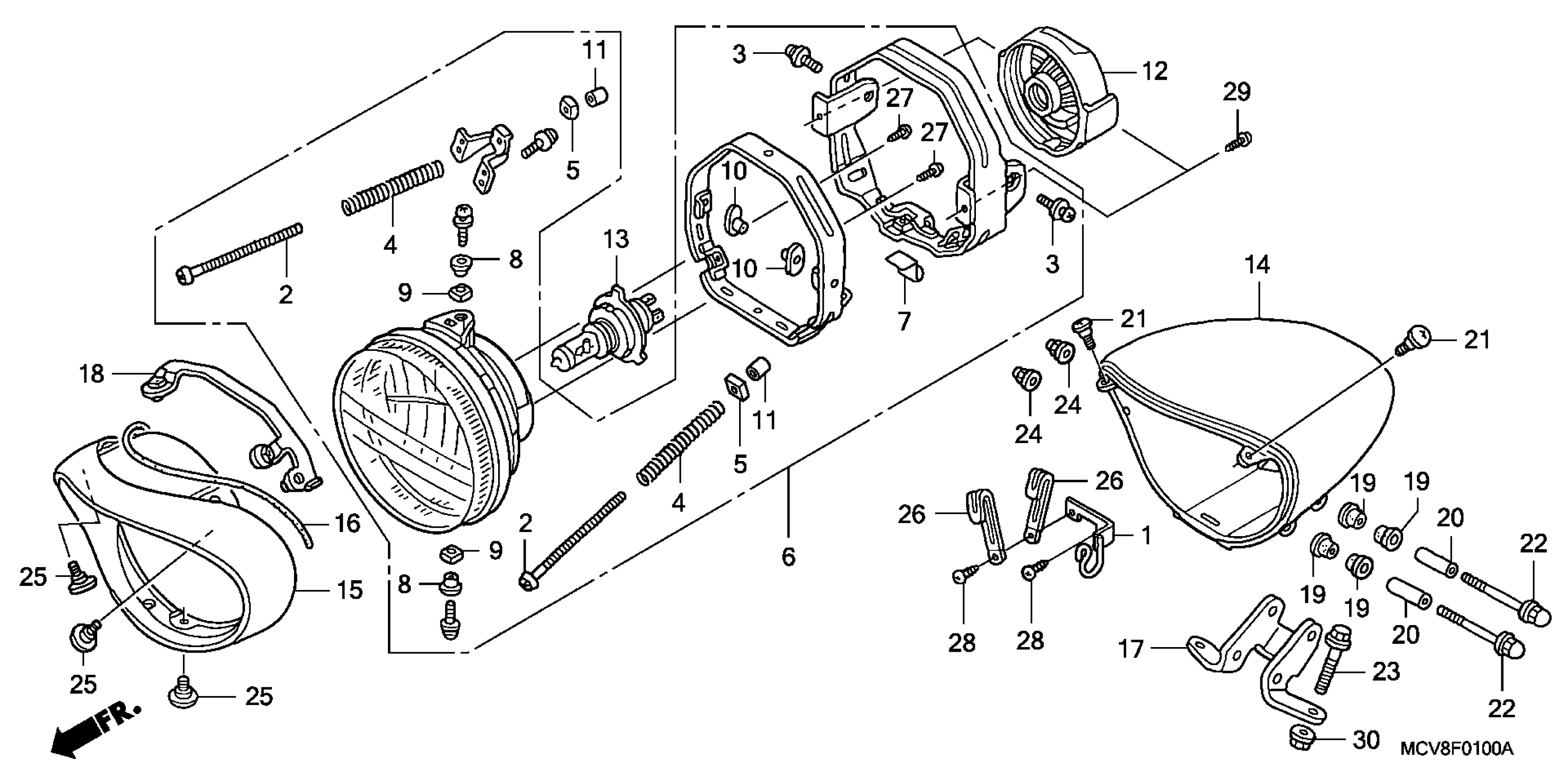Honda VTX1800T11A (08) MOTORCYCLE, USA, VIN# 1HFSC49T-8A600001 HEADLIGHT Diagram