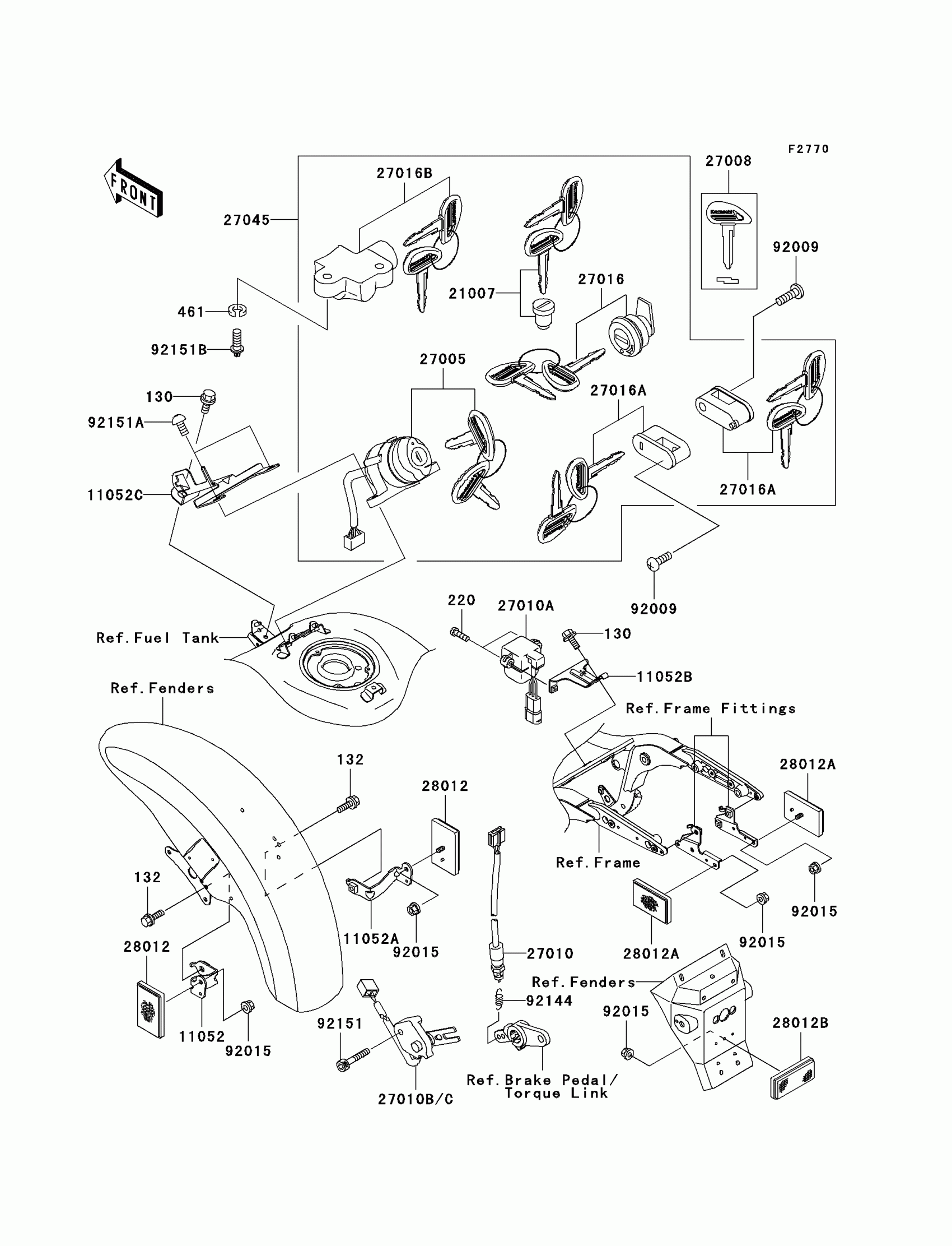Kawasaki Vulcan 1500 Mean Streak Ignition Switch/Locks/Reflectors Diagram