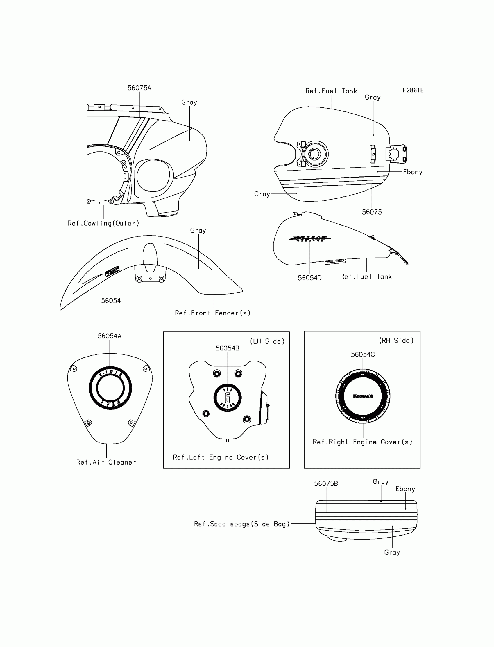 Kawasaki VULCAN® 1700 VAQUERO® ABS Decals(Gray/Ebony)(KFF) Diagram