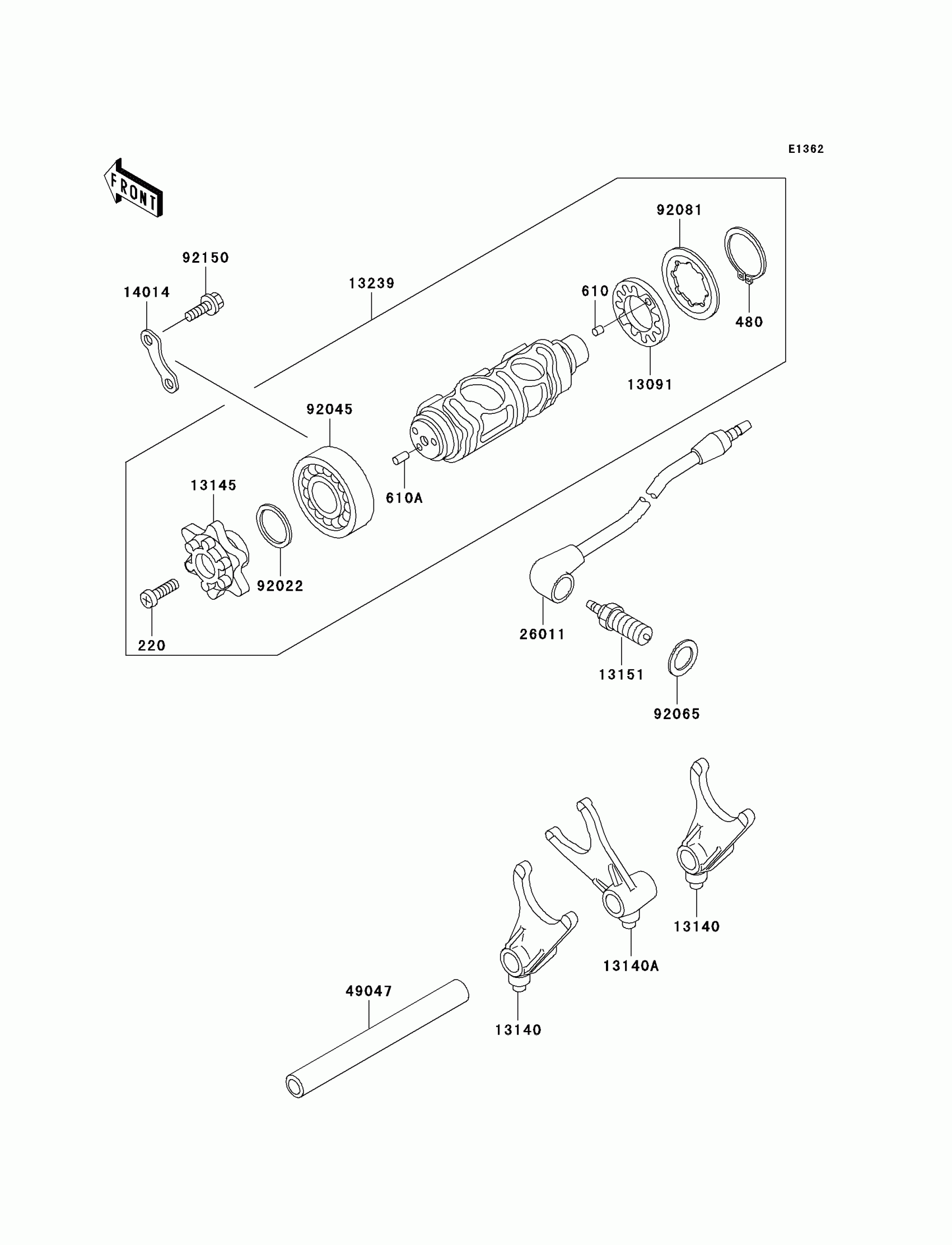 Kawasaki Vulcan 800 Classic Gear Change Drum/Shift Fork(s) Diagram