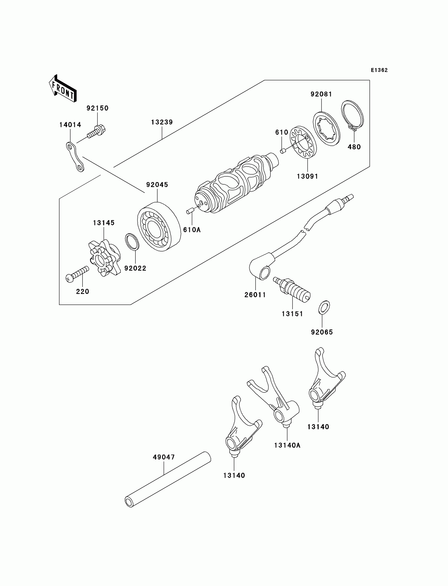 Kawasaki Vulcan 800 Drifter Gear Change Drum/Shift Fork(s) Diagram