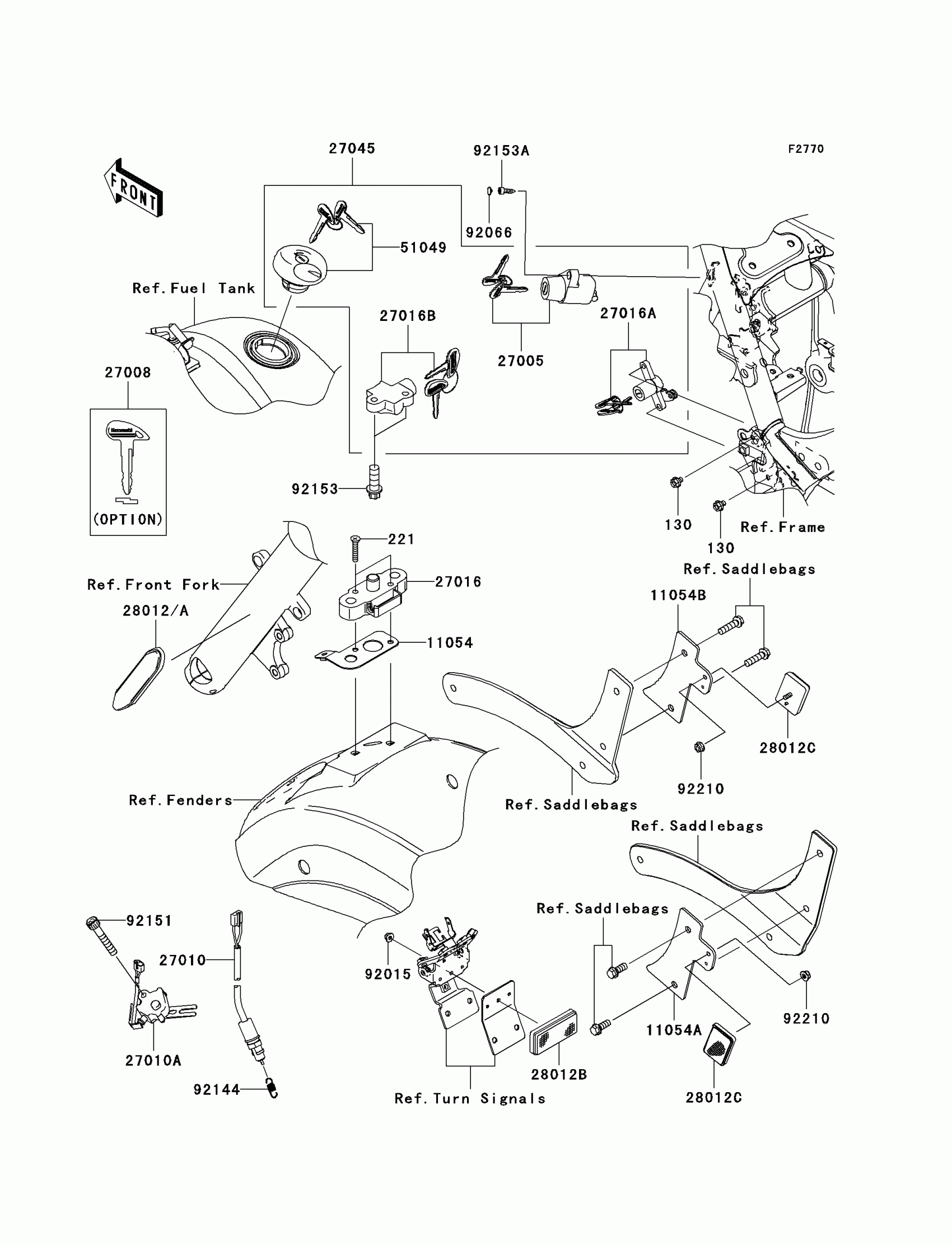 Kawasaki Vulcan® 900 Classic LT Ignition Switch/Locks/Reflectors Diagram