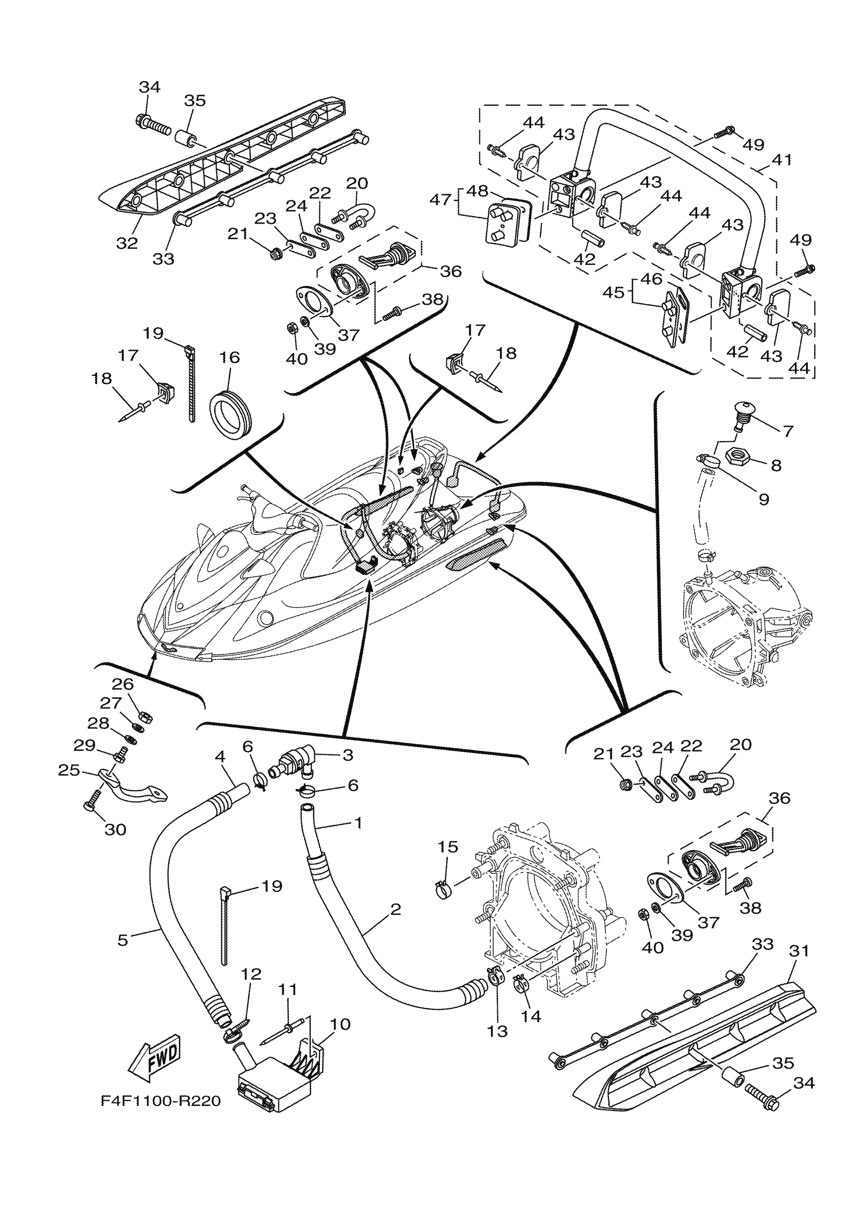 Yamaha VX1050DR (V1 SPORT) F4F1 2016 HULL & DECK Diagram