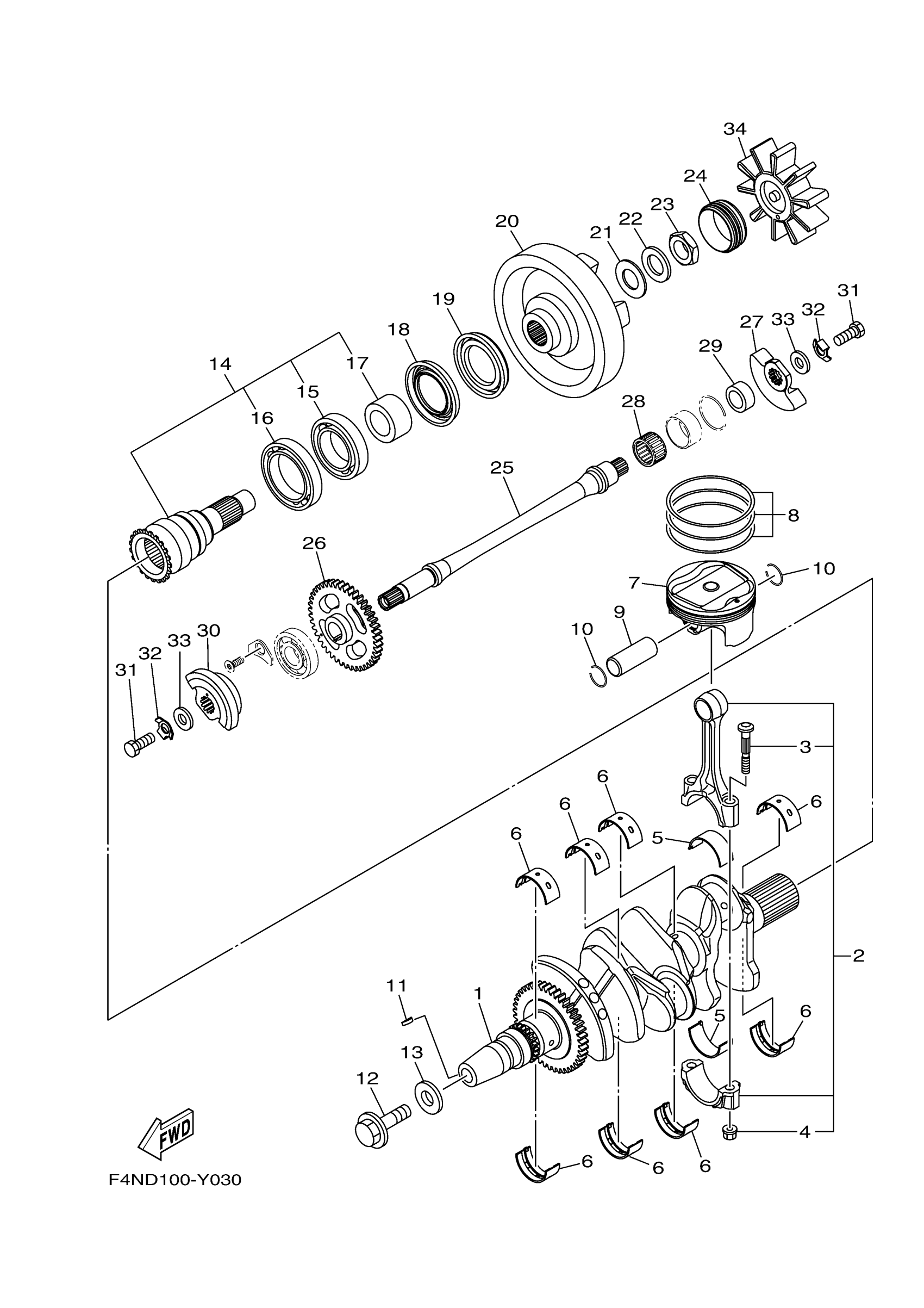 Yamaha VX1050FB (VX) F4NX 2025 CRANKSHAFT & PISTON Diagram
