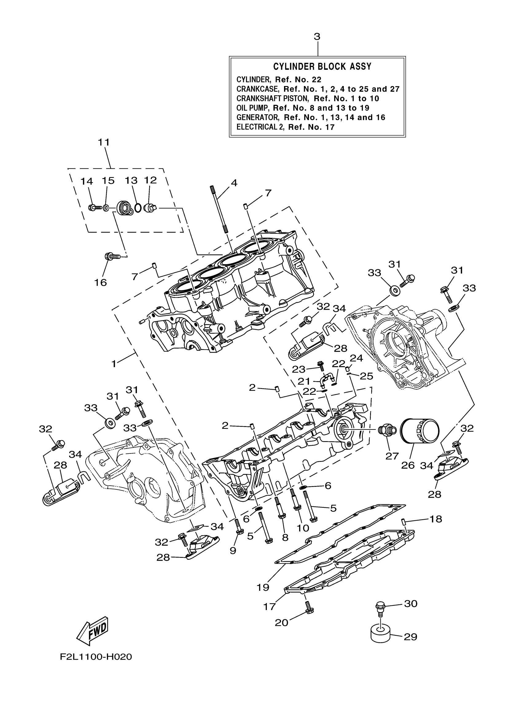 Yamaha VX1100BH (WAVERUNNER VX CRUISERVX1100BH WAVERUNNER) F2L4 2009 CRANKCASE Diagram