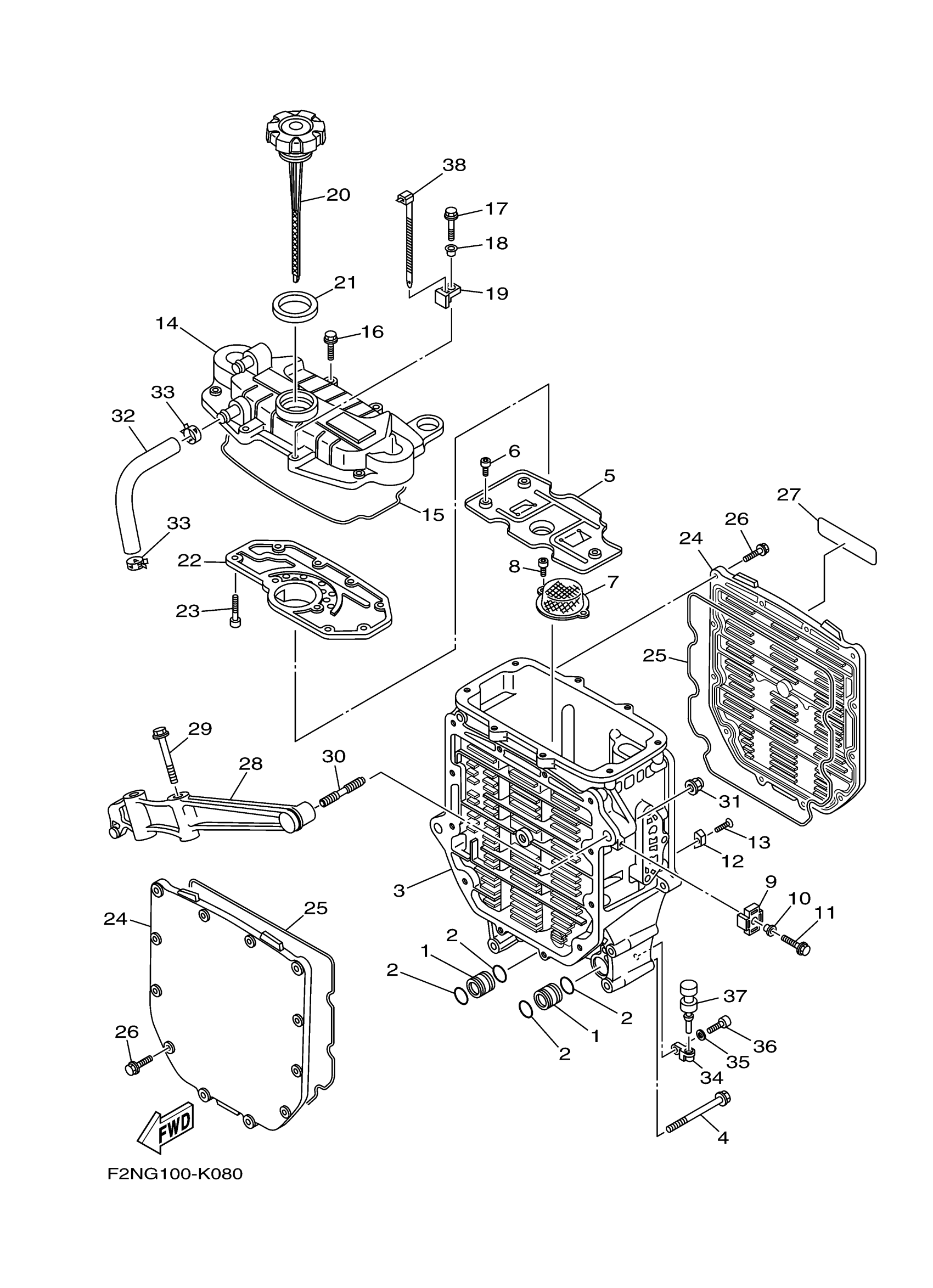 Yamaha VX1100CK (VX SPORT) F2NG 2011 OIL COOLER Diagram