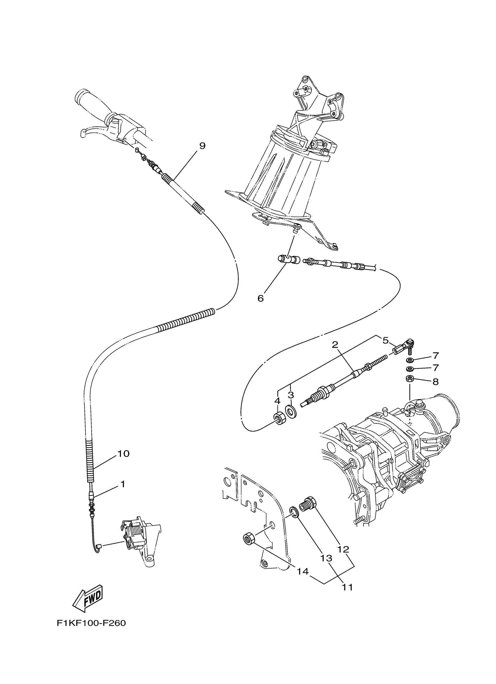 Yamaha VX1100G (WaveRunner VX) F1KV 2008 CONTROL CABLE Diagram
