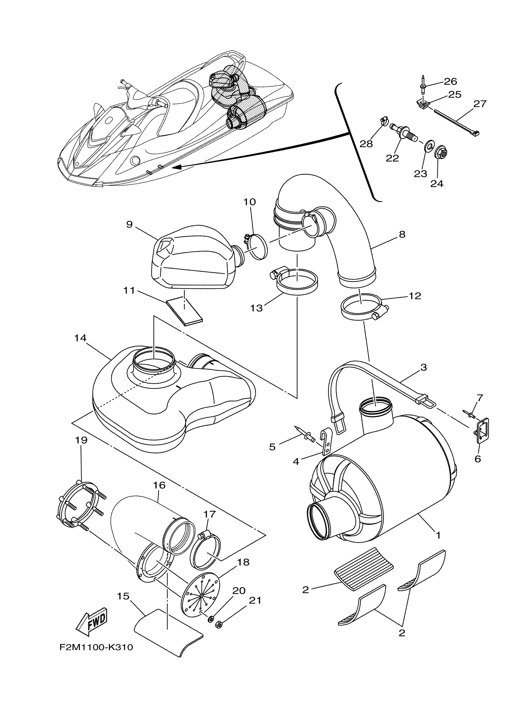 Yamaha VX1800AK (VXR) F2M1 2011 EXHAUST 3 Diagram